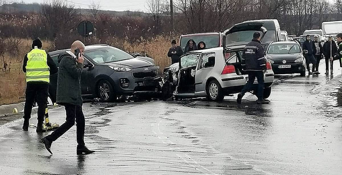 Din primele cercetări efectuate s-a constatat că, în timp ce conducea un autoturism dinspre Sibiu spre Agnita, un bărbat în vârstă de 63 de ani, din jud. AB, pe fondul vitezei neadaptate pe un tronson de drum în curbă extrem de periculoasă la dreapta, a pătruns pe contrasens, unde a intrat în coliziune frontală cu un autoturism condus spre Sibiu de către un sibian în vârstă de 38 de ani.