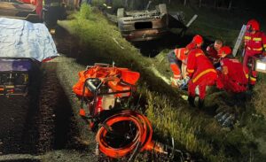 Din primele verificări efectuate la fața locului polițiștii au stabilit faptul că, în timp ce conducea un autoturism pe DN 1, pe direcția Sibiu – Brașov, un bărbat în vârstă de 42 de ani din județul Cluj, din cauze care urmează a fi stabilite, a pierdut controlul direcției de deplasare și s-a răsturnat în afara părții carosabile.