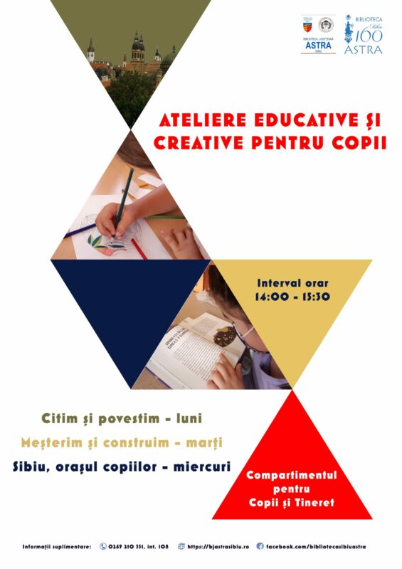 Ateliere educative și creative pentru copii, la Biblioteca Județeană ASTRA Sibiu
