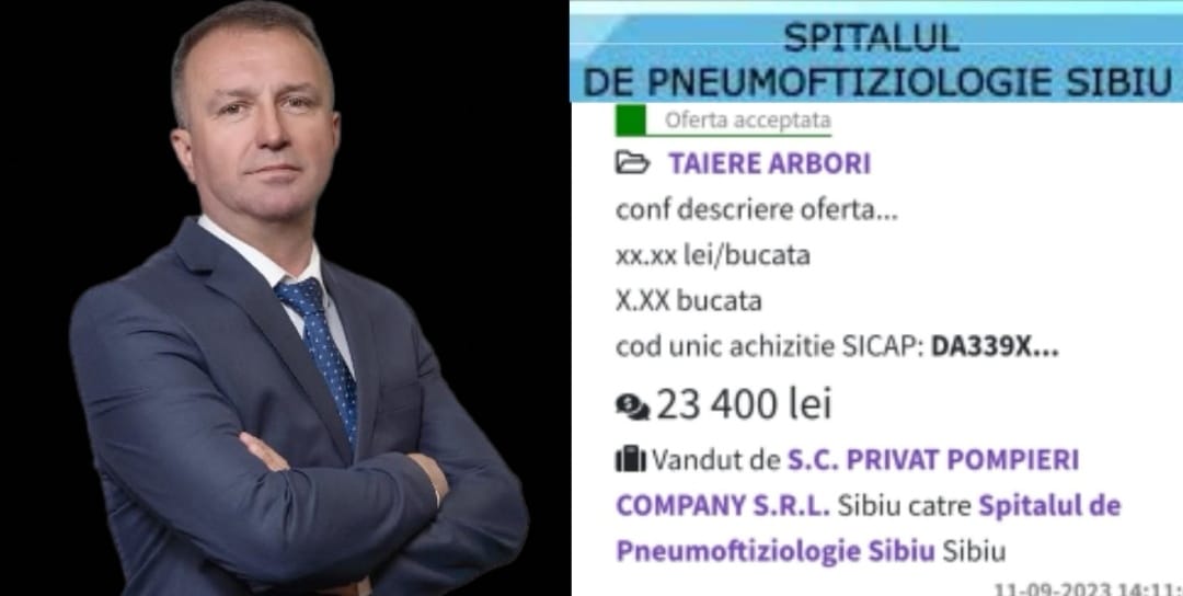 Firma de pompieri unde viceprimarul Șelimbărului Cornel Oana este BENEFICIAR, a încasat 23.400 lei + TVA pentru tăierea a doar 10 arbori.