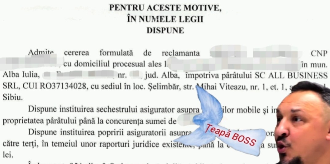 Judecătoria Sibiu a dispus sechestrul asigurător asupra firmei ALL BUSINESS SRL, înregistrate în Șelimbăr, în urma unei anchete privind o înșelătorie în sectorul imobiliar.