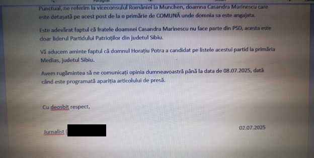 Marinescu Casandra, viceconsul al României la Munchen, este detașată de la Primăria comunei Vurpăr din județul Sibiu pe acest post consular, conform pozelor atașate:
