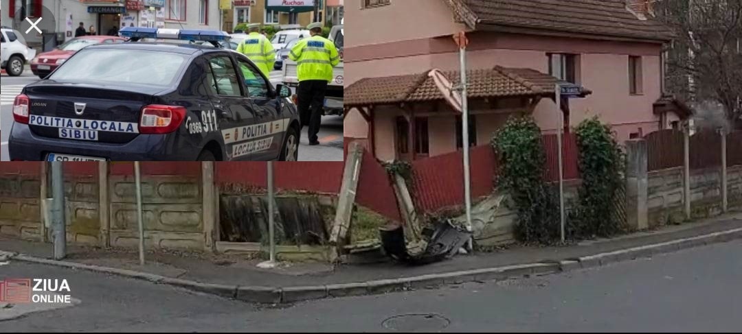 În urma unui accident rutier ce a avut loc în municipiul Sibiu la intersecția străzilor Tălmacel cu Săcel, a rezutat distrugerea unui zid și oglinzii rutiere.