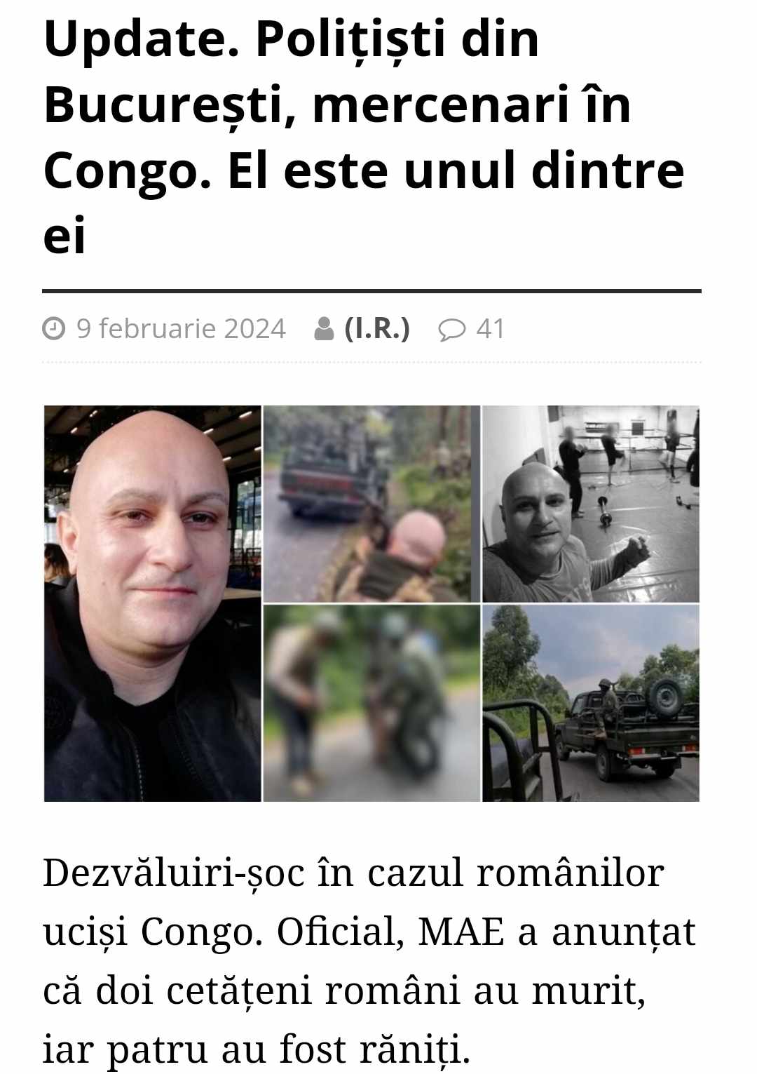 Să nu uităm că potrivit investigațiilor explozive Ziua Online, mercenari trimiși de Horatiu Potra în Congo, bineînțeles pe bază de contract, a luat o turnură mortală.