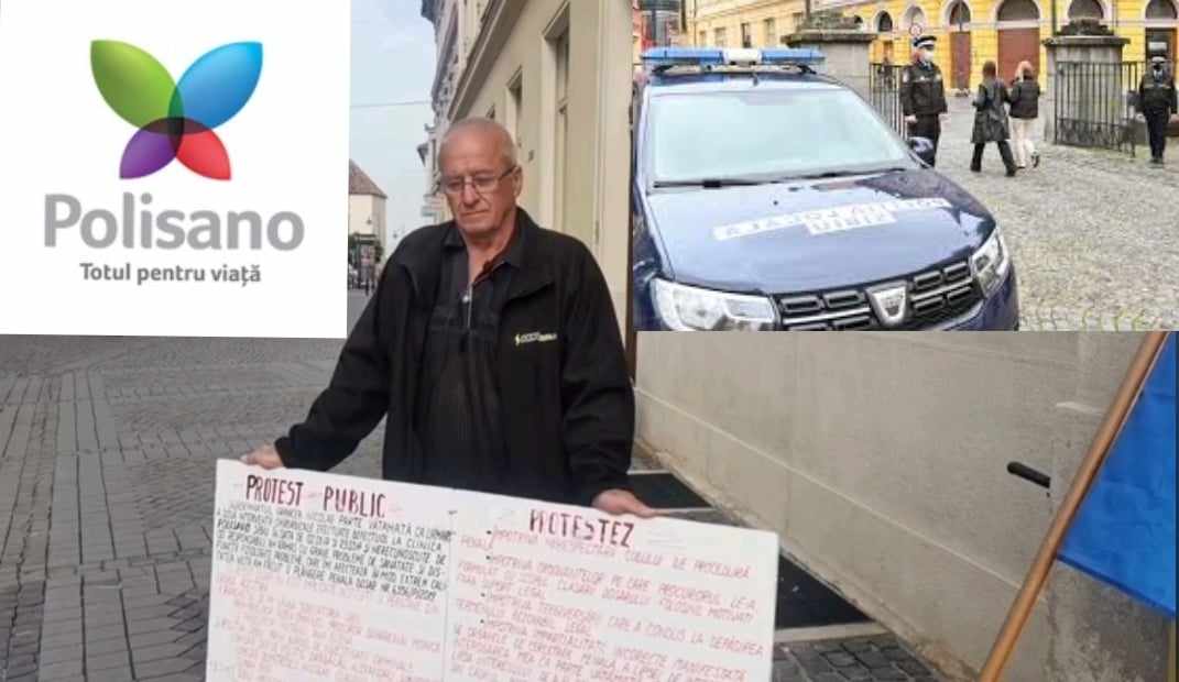 Un făgărășean protestează la Sibiu. Spune că a fost operat greșit de Polisano. Reacția clinicii