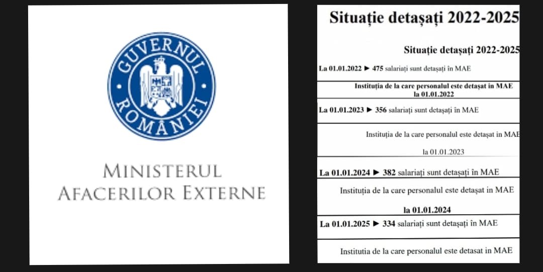Ziua Online a reușit să intre în posesia detașărilor MAE efectuate în perioada 2022-2025 unde, observăm detașări care au transformat ambasadele României în saloane VIP pentru pilele instituțiilor publice.