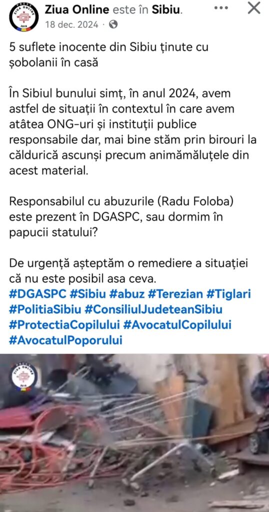Oare DGASPC Sibiu are cunoștiință de acest caz, sau se ascund după județul Mureș ca în cazul familiei care trăiau cu șobolani?