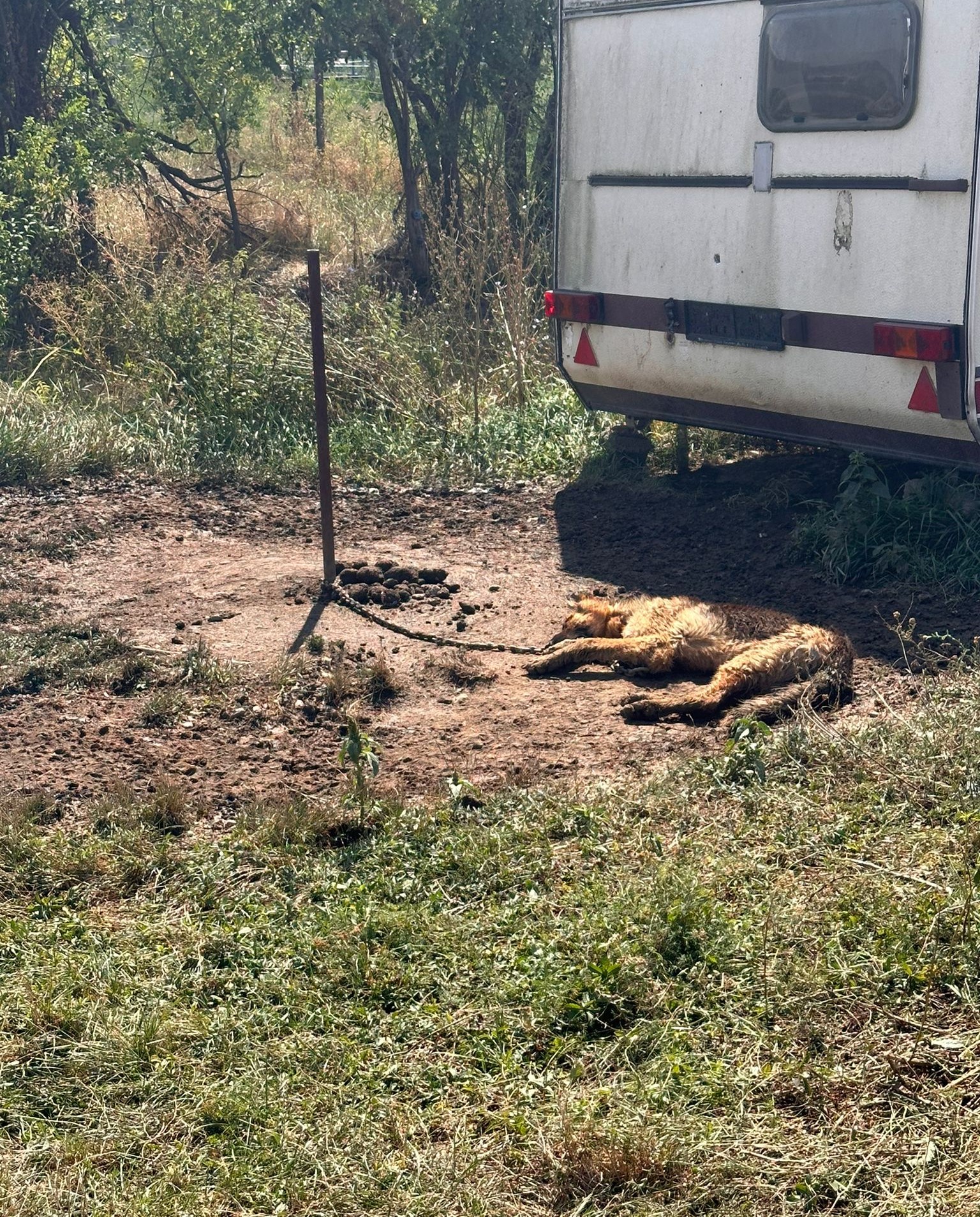 Astfel, pe un teren viran, în localitatea Leș, județ Bihor, polițiștii de la protecția animalelor au descoperit un câine metis din rasa Ciobănesc German, legat cu un lanț foarte scurt, sub 2 metri lungime. Animalul nu beneficia de un adăpost corespunzător, fiind ținut în noroi, sub cerul liber, printre materii fecale de origine animală, fără posibilitatea de a se adăposti la umbră.