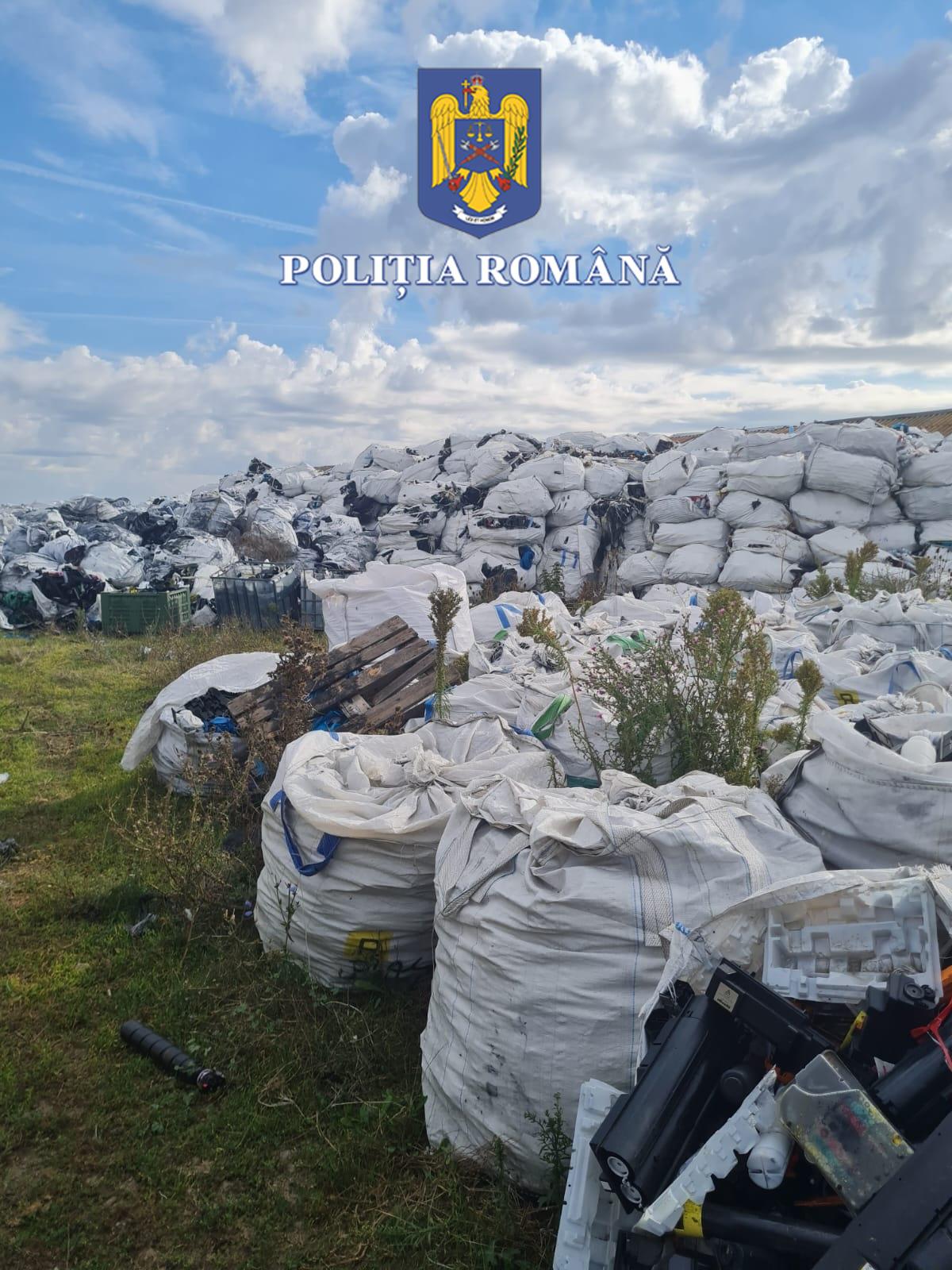 În saci au fost găsite tonere, imprimante, resturi de plastic, hârtie și materiale textile.