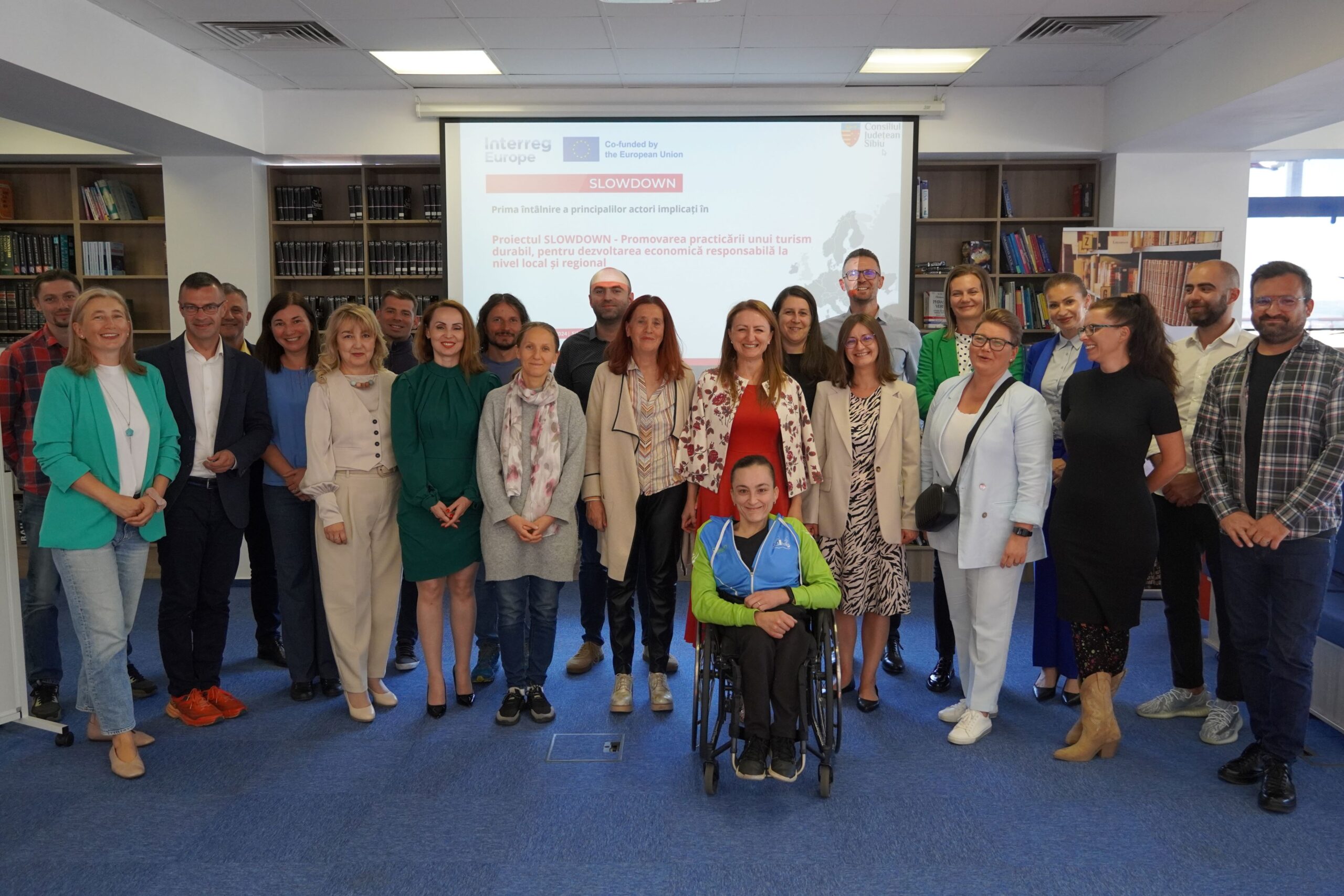 Prima întâlnire a principalelor instituții și organizații implicate în derularea Proiectului „SLOWDOWN – Promovarea practicării unui turism durabil, pentru dezvoltarea economică responsabilă la nivel local și regional”, finanțat de Uniunea Europeană prin Programul Interreg Europe, a avut loc la Biblioteca Județeană „Astra” Sibiu, fiind organizată de Consiliului Județean Sibiu.
