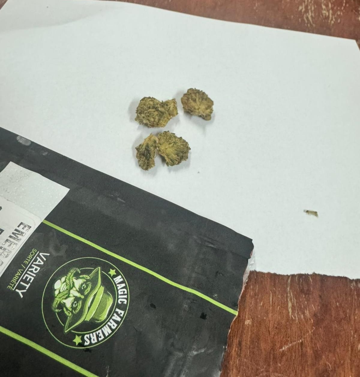 În urma controlului, jandarmii au descoperit în buzunarul unuia dintre cei trei tineri un pachețel de foițe, folosite la fabricarea artizanală a țigaretelor, iar în buzunarul altuia un pachețel de carton în care se aflau trei muguri vegetali, de culoare verde-oliv, cu miros specific.