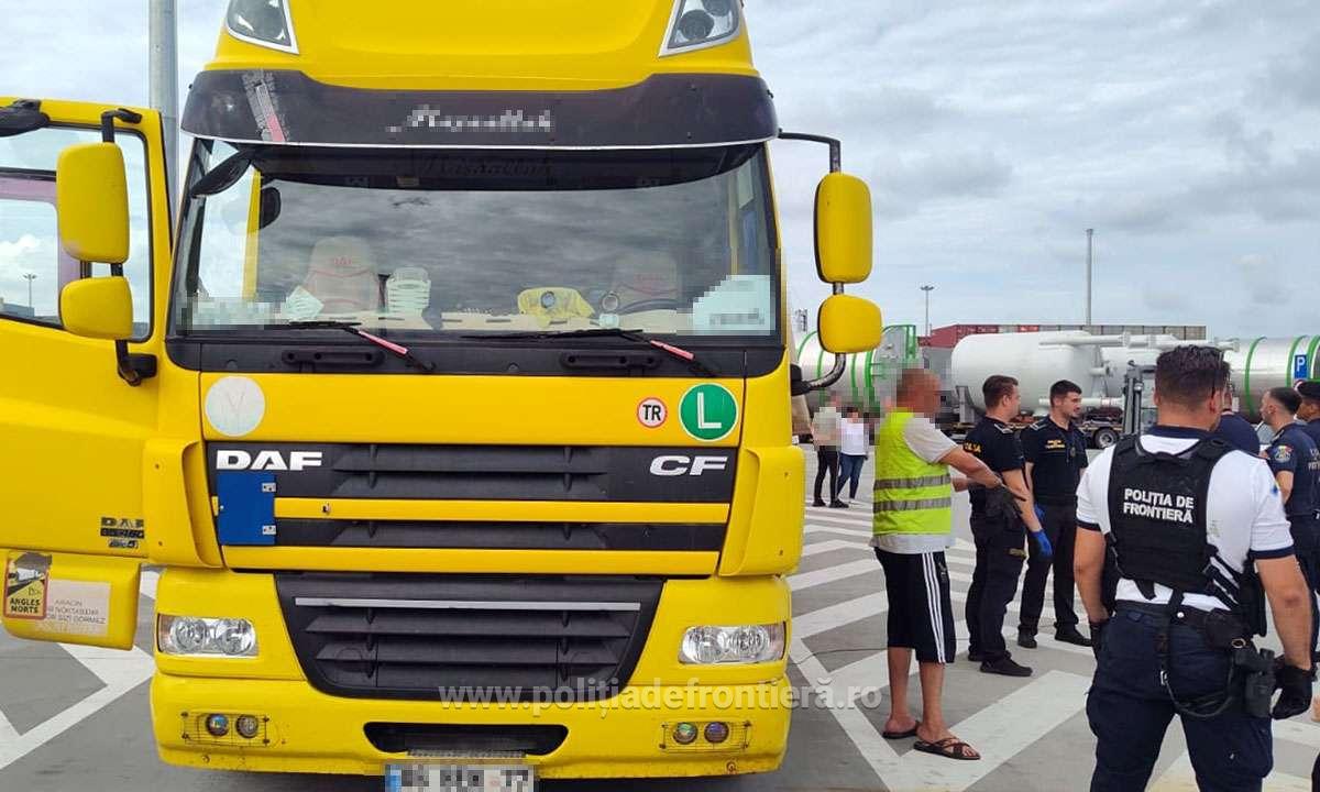 Poliţiştii de frontieră din cadrul Punctului de Trecere a Frontierei Constanța-Sud-Agigea au depistat trei cetăţeni sirieni care au încercat să treacă ilegal frontiera din Turcia în România, ascunși în semi-remorcile unor autocamioane.