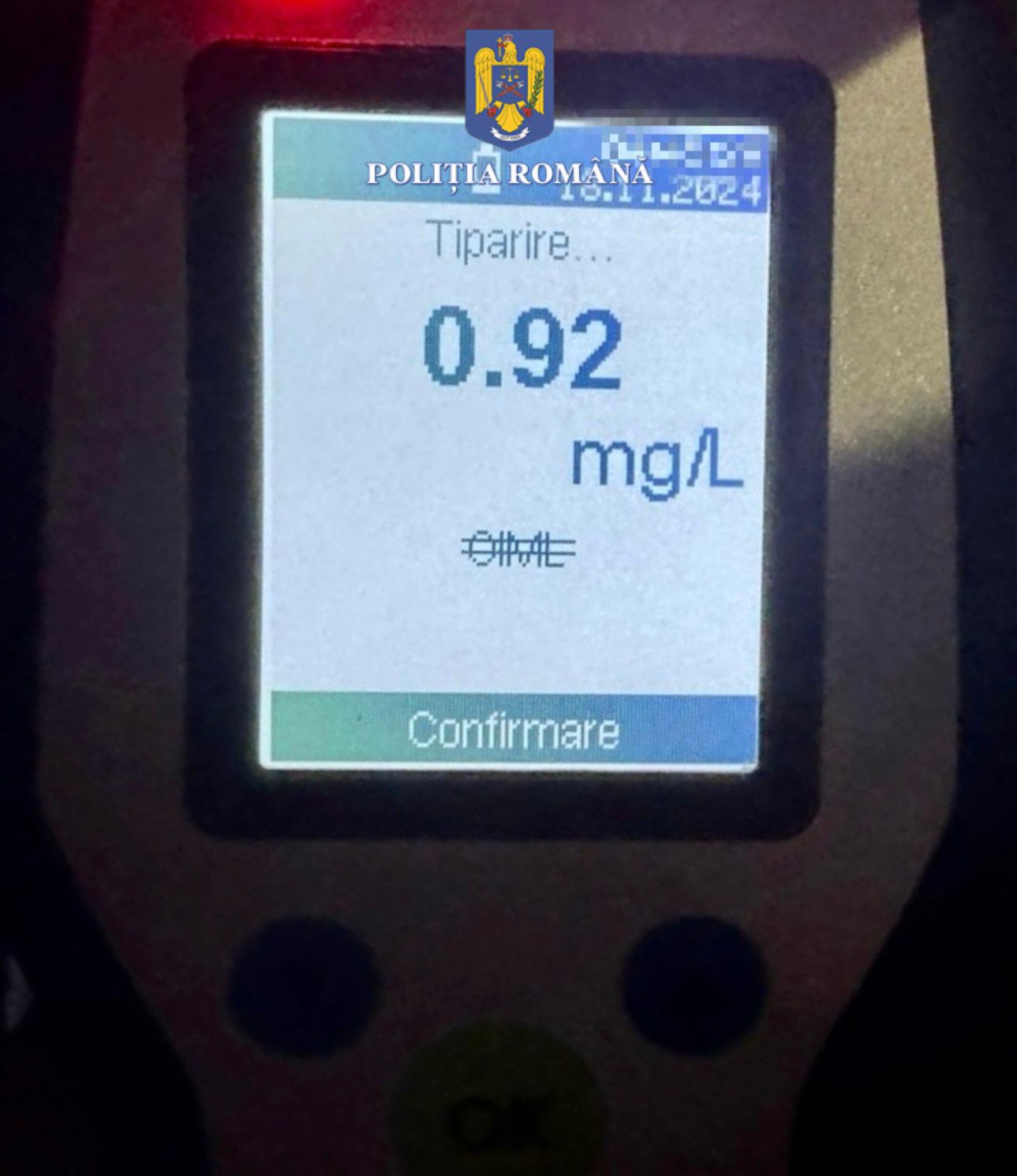 Întrucât emana halenă alcoolică, tânărul a fost testat cu aparatul etilotest, fiind indicat un rezultat de 0,92 mg/l alcool pur în aerul expirat.