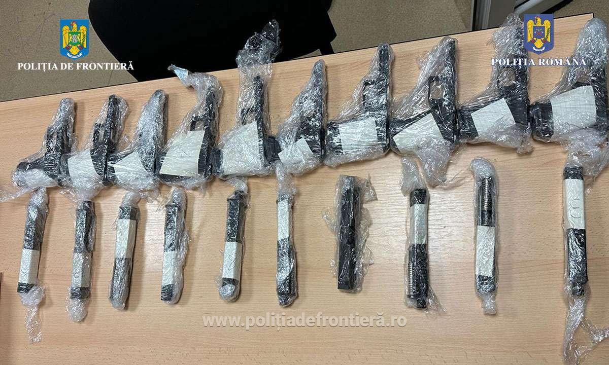 Polițiștii de frontieră din cadrul Punctului de Trecere a Frontierei Calafat-Vidin au descoperit, în urma unui control efectuat asupra unui automarfar, 10 pistoale, ascunse într-un rucsac din cabina mijlocului de transport.