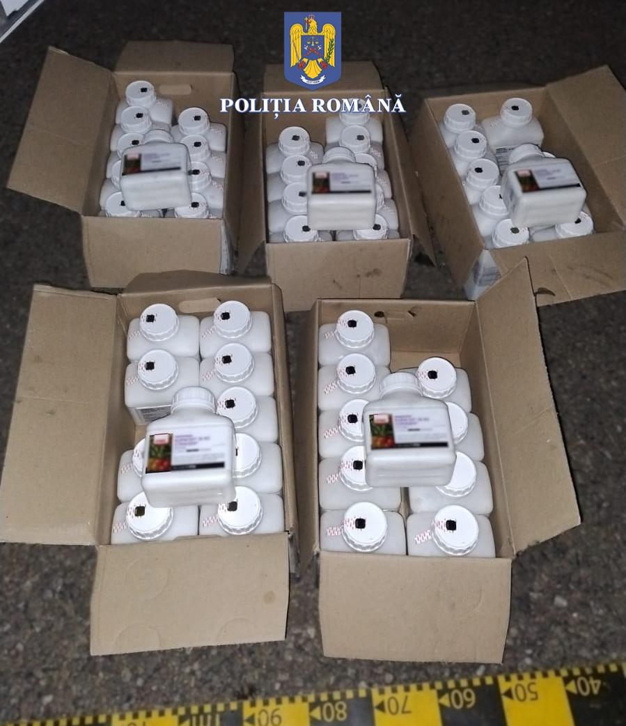 Totodată, au fost indisponibilizate, în vederea cercetărilor, autoutilitara cu care s-a efectuat transportul, cei 1.000 de litri de pesticide, precum și 5 terminale mobile.