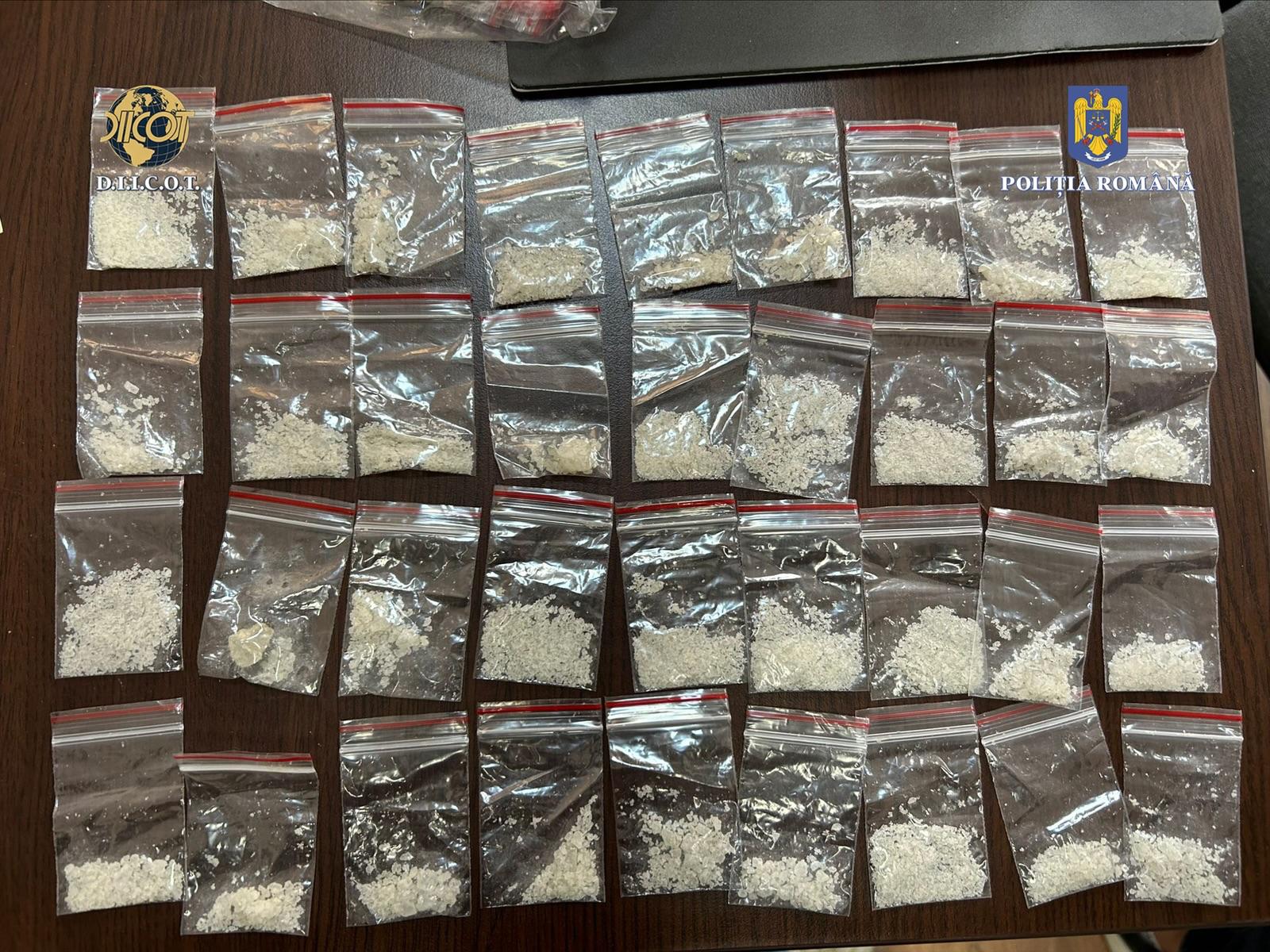 În cursul perchezițiilor domiciliare efectuate au fost descoperite și ridicate mai multe pungi și peste 200 de plicuri tip zip lock conținând substanțe pulverulente din categoria drogurilor de mare risc și a celor psihoactive (3 CMC, 4 CMC și 2MMC) pregătite pentru comercializare, diferite cantități de canabis, fragmente de comprimate MDMA, peste 300 de plicuri ziplock goale, grindere, cântare, 15.800 de lei, precum și alte mijloace de probă.