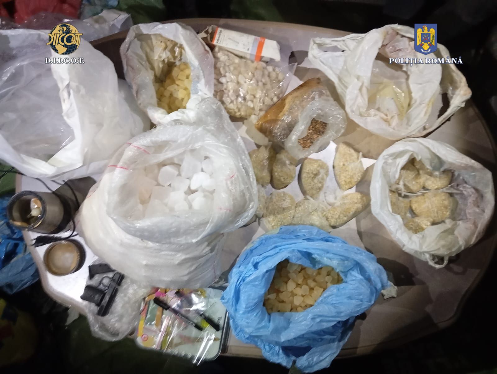La data de 12 noiembrie a.c., au fost efectuate 22 de percheziții domiciliare, în județele Galați și Vrancea, fiind descoperite și ridicate aproximativ 5,5 kilograme de amfetamină (drog de mare risc), 980 de grame de drog de mare risc (4 – CMC), 34 de grame de cristal (3-CMC, drog de mare risc), obiecte purtând urme de substanță, precum și alte mijloace de probă.