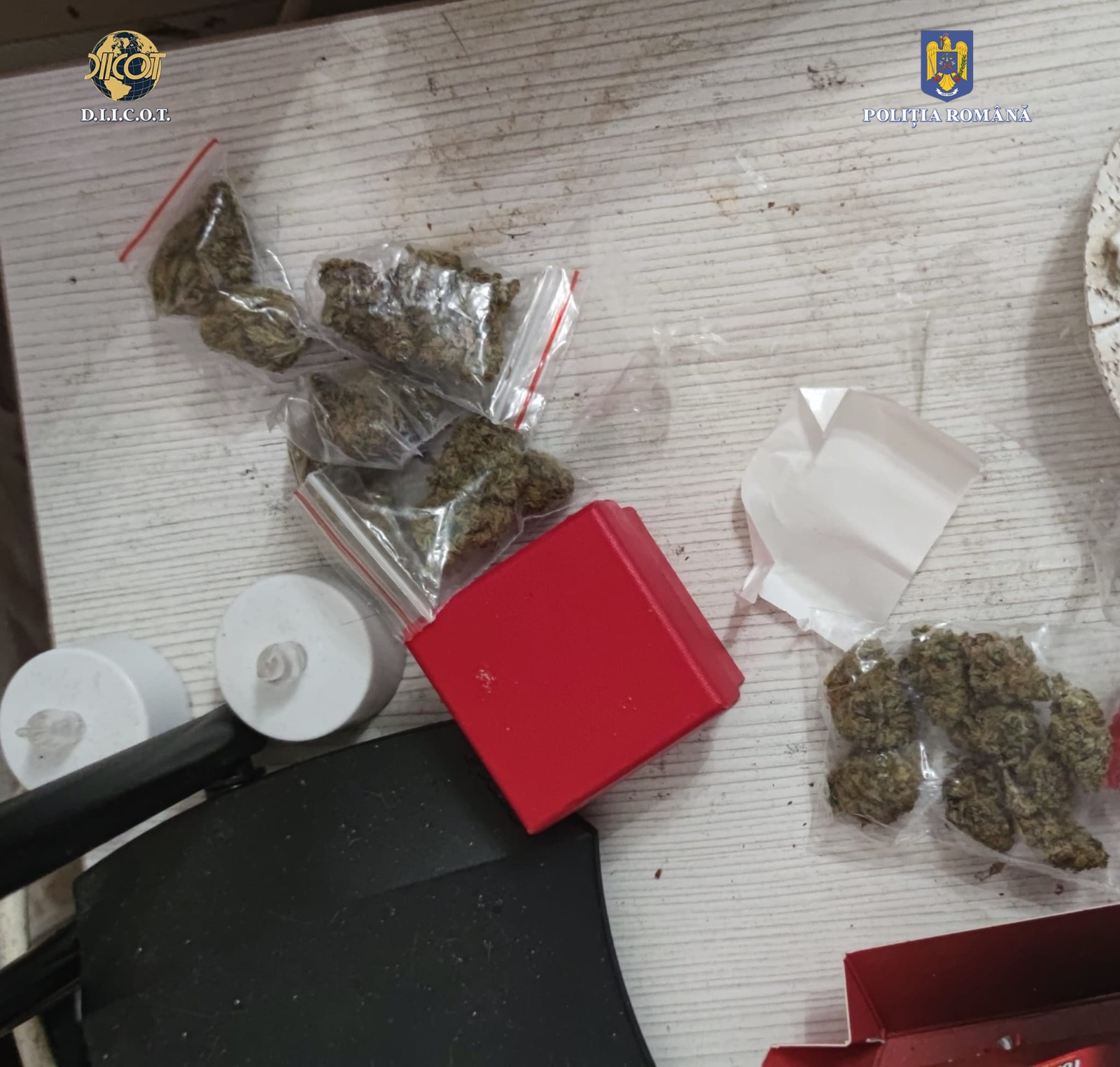 În urma perchezițiilor domiciliare, efectuate în cursul zilei de ieri, au fost descoperite și ridicate 106 grame de cristal (3-CMC, drog de mare risc) porționat și ambalat în 140 de pliculețe autosigilante, 48 de grame de canabis (drog de risc) porționat și ambalat în 37 de pliculețe, două cântare electronice de precizie, peste 400 de pliculețe tip zip-lock nefolosite, precum și alte mijloace de probă.