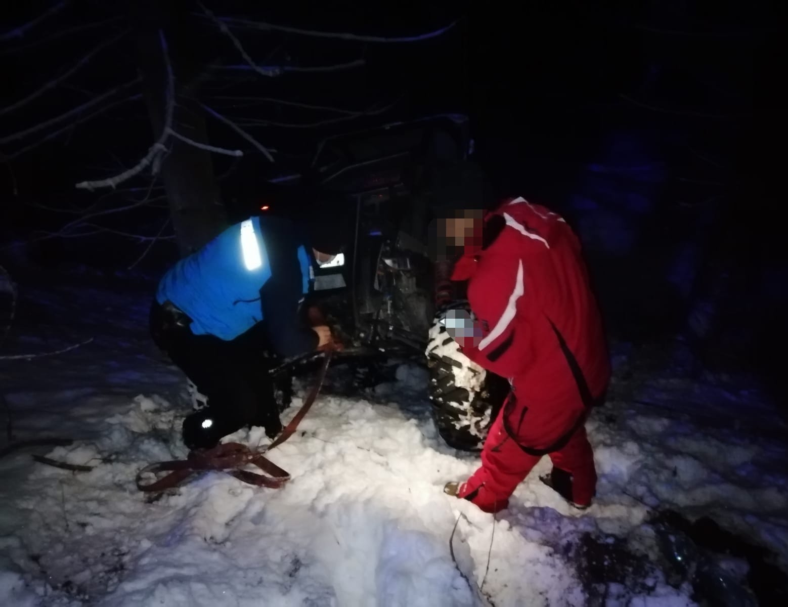 Jandarmii l-au ajutat să repună pe direcție buggy, iar cu ajutorul unui tractor din stațiune a fost tractat până la drumul județean.