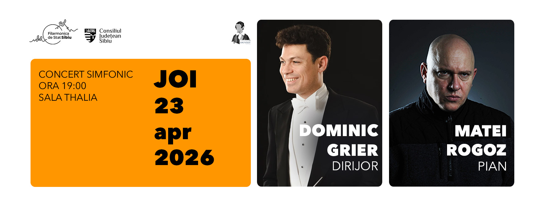Filarmonica de Stat Sibiu aduce joi, 23 aprilie, de la ora 19:00, la Sala Thalia, un program dedicat romantismului european, sub bagheta dirijorului Dominic Grier, cu pianistul Matei Rogoz ca solist.