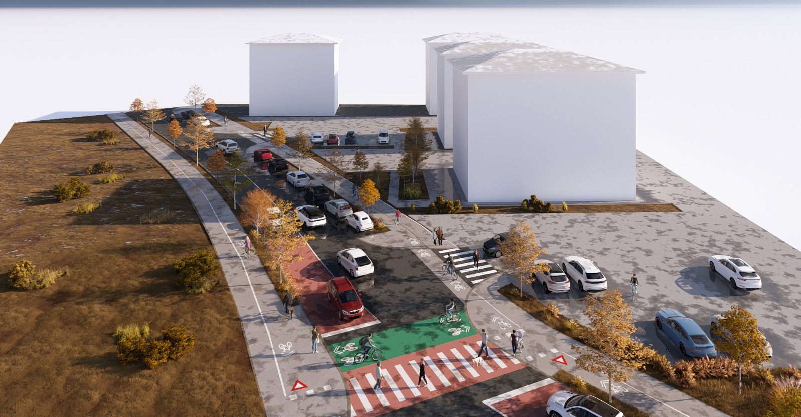– Carosabilul cu 2 benzi de circulație și trotuarele