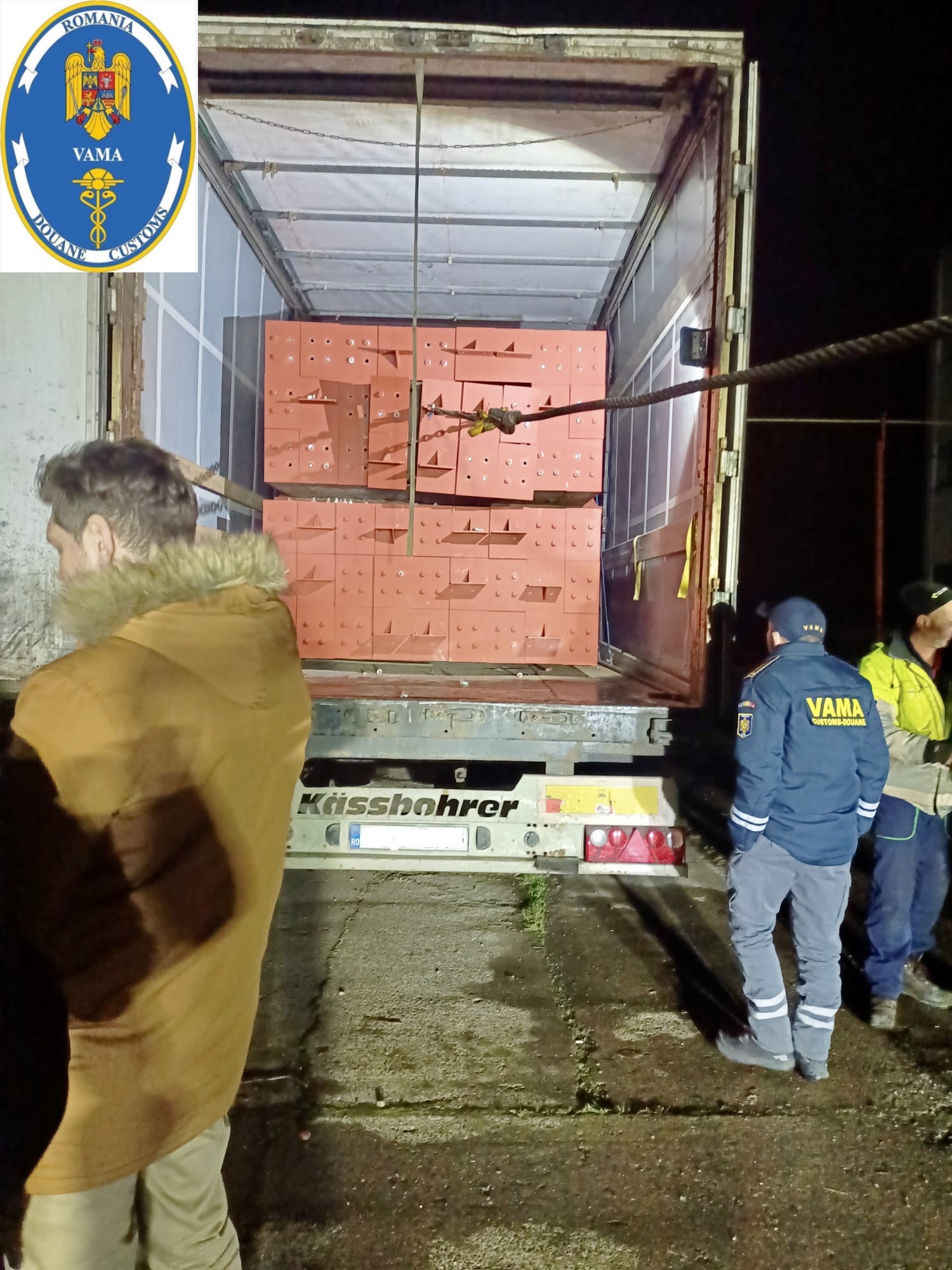 Totodată, în incintă a fost descoperit un automarfar încărcat cu profile metalice, asamblate intre ele, formând două structuri paralelipipedice, cu un posibil spațiu de depozitare la interior. Aceste structuri au fost demontate cu ajutorul unor utilaje grele, iar la interior s-au găsit 225 baxuri de țigarete Marlble si Marlboro conținând 2.500.000 țigarete nemarcate.Acele țigarete au fost reținute, în vederea confiscării, de către autoritatea vamală, iar instalația a fost reținută de către organele de poliție.Valoarea aproximativă a acestor țigarete este de 2.520.000 RON.