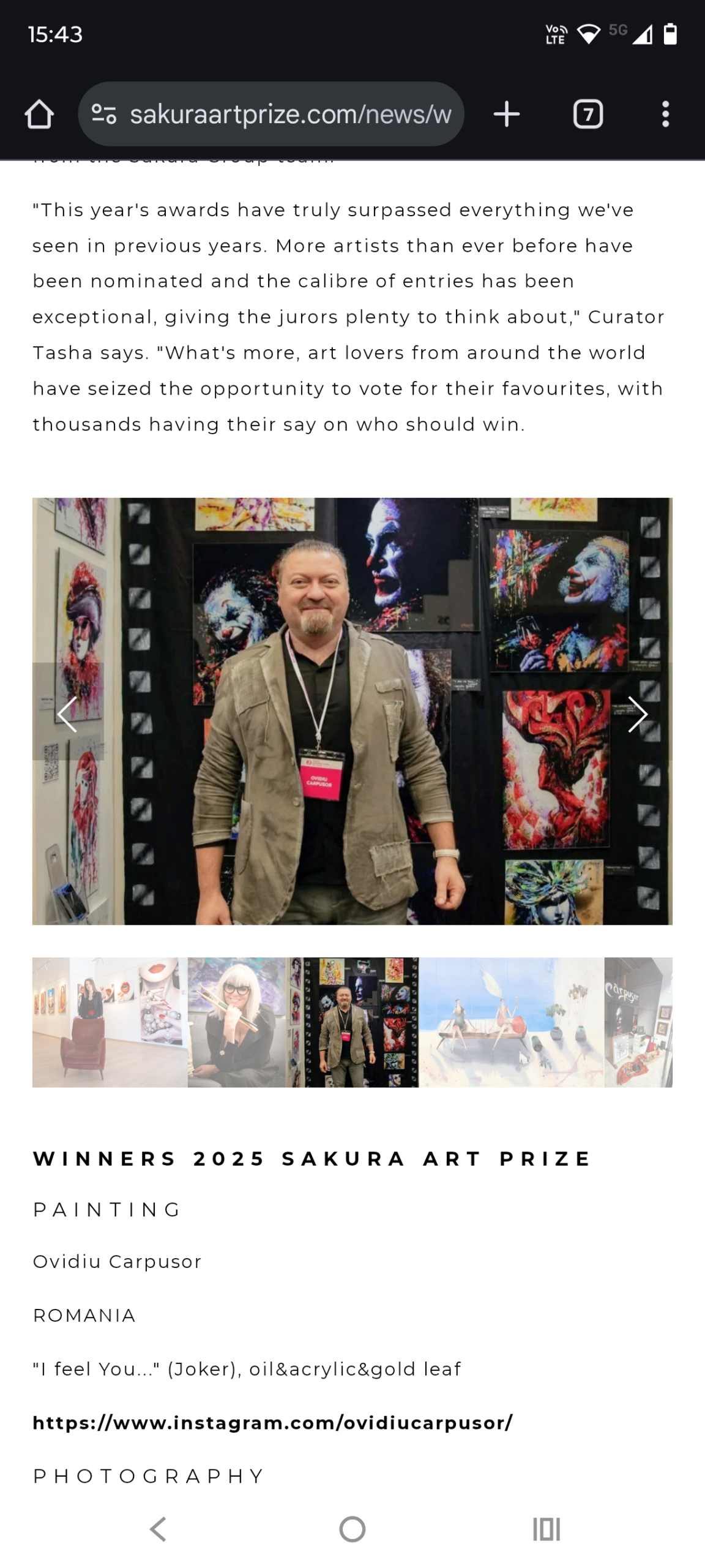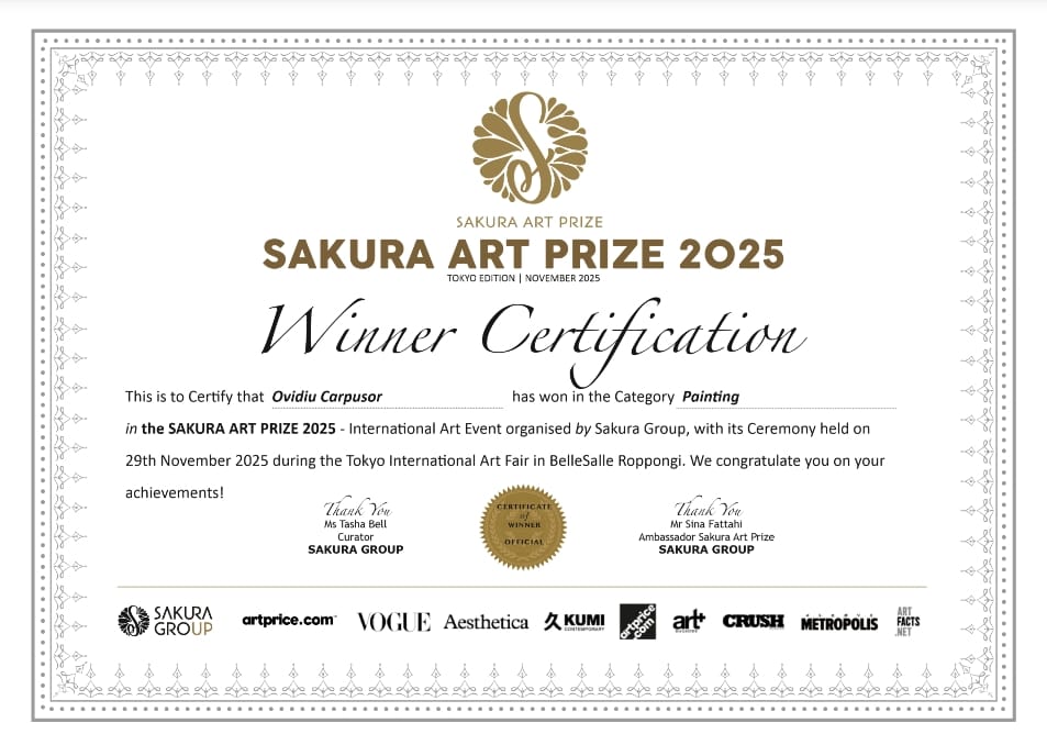 Această etapă a activității sale este consacrată de obținerea Marelui Premiu Internațional de Pictură – Locul I Mondial în cadrul competiției Sakura Art Prize, una dintre cele mai respectate platforme artistice internaționale. Desfășurată pe parcursul a opt–nouă luni și finalizată la Tokyo, competiția a reunit artiști de elită din toate regiunile lumii, selectați printr-un proces complex de jurizare și vot internațional. Accesul în marea finală a presupus atingerea unui prag minim de 100 de voturi, criteriu depășit cu mult de Ovidiu Cărpușor, care a acumulat peste 2.400 de voturi, devenind singurul artist român calificat în această etapă și intrând în marea finală de pe poziția a IV-a. În ultima fază, peste 80 de artiști internaționali au fost evaluați de o comisie formată din mai mult de 100 de specialiști — critici de artă, curatori, profesori universitari, galeristi, artiști și colecționari — care au desemnat, în urma deliberărilor finale, lucrarea semnată de Cărpușor drept cea mai valoroasă din punct de vedere artistic, tehnic și conceptual.