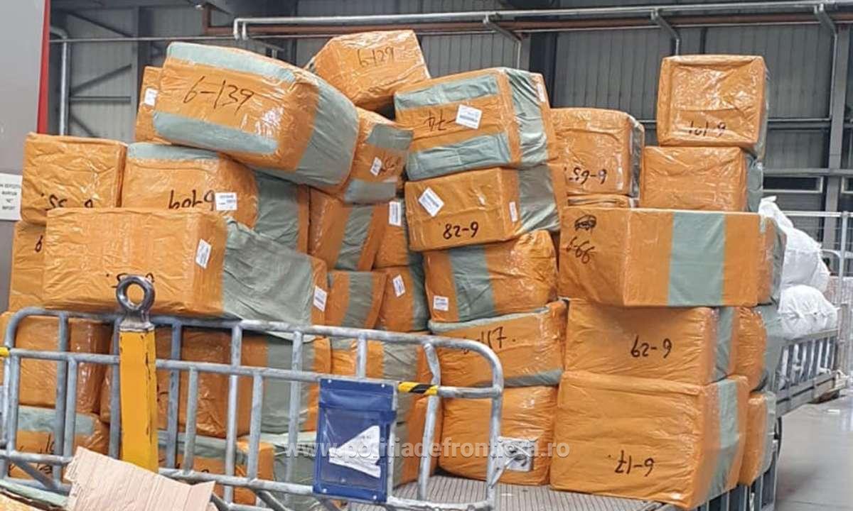 Poliţiştii de frontieră din cadrul Centrului de Supraveghere şi Controlul Trecerii Frontierei Aeroporturi Bucureşti Otopeni efectuează cercetări cu privire la un transport de aproximativ trei tone de bunuri susceptibile a fi contrafăcute. Dacă ar fi fost comercializate ca produse de marcă, valoarea acestora se ridică la 10 milioane de lei. Marfa a fost expediată din China şi urma să ajungă, pe cale terestră, în Ucraina.