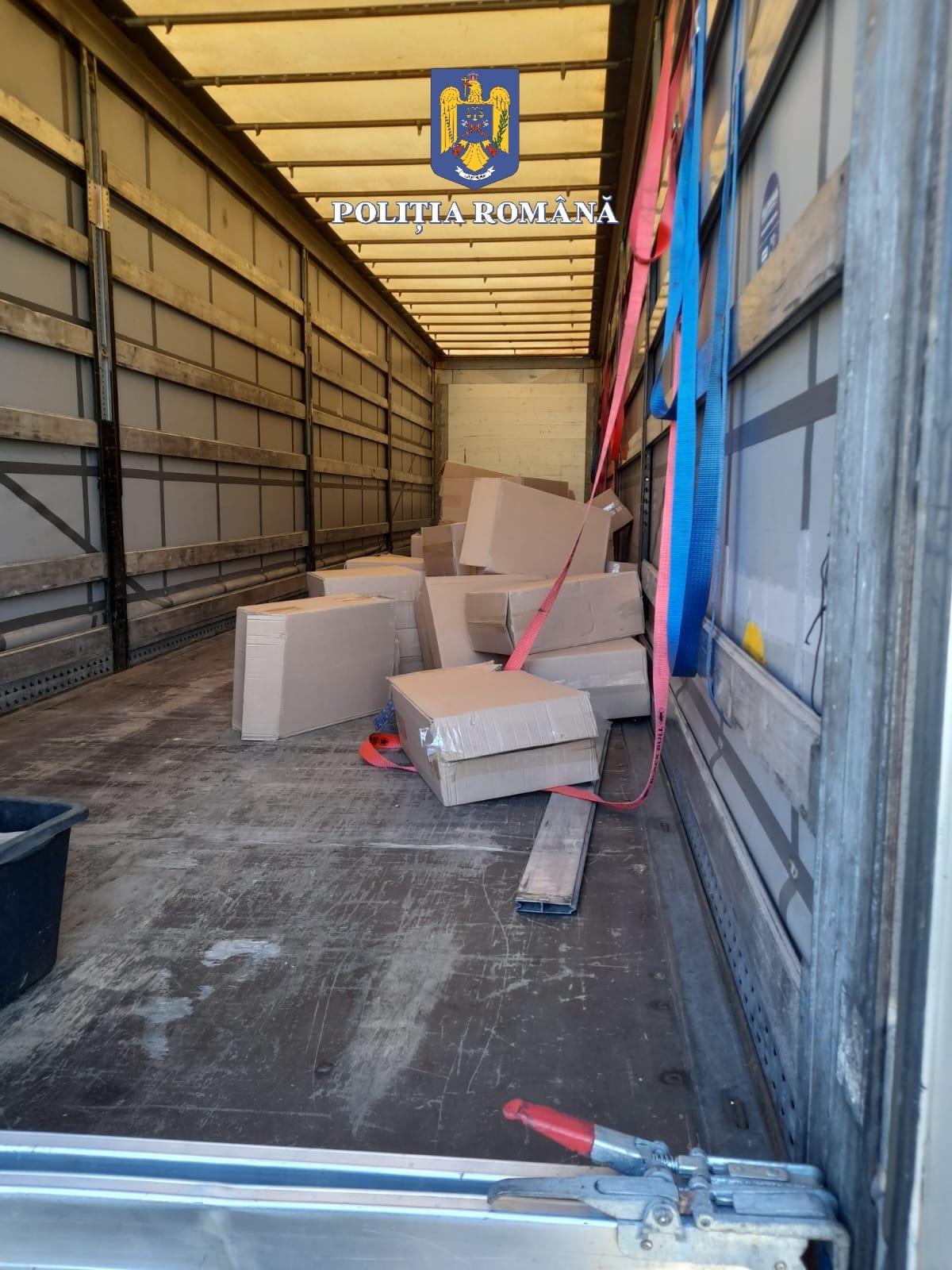 În urma verificărilor efectuate, polițiștii au depistat în semiremorcă 399.000 de țigarete, în valoare de 399.000 de lei, produse despre care există bănuiala că nu ar fi fost plasate sub un regim vamal, neavând aplicate timbre fiscale care să ateste plata taxelor și accizelor pe teritoriul României.