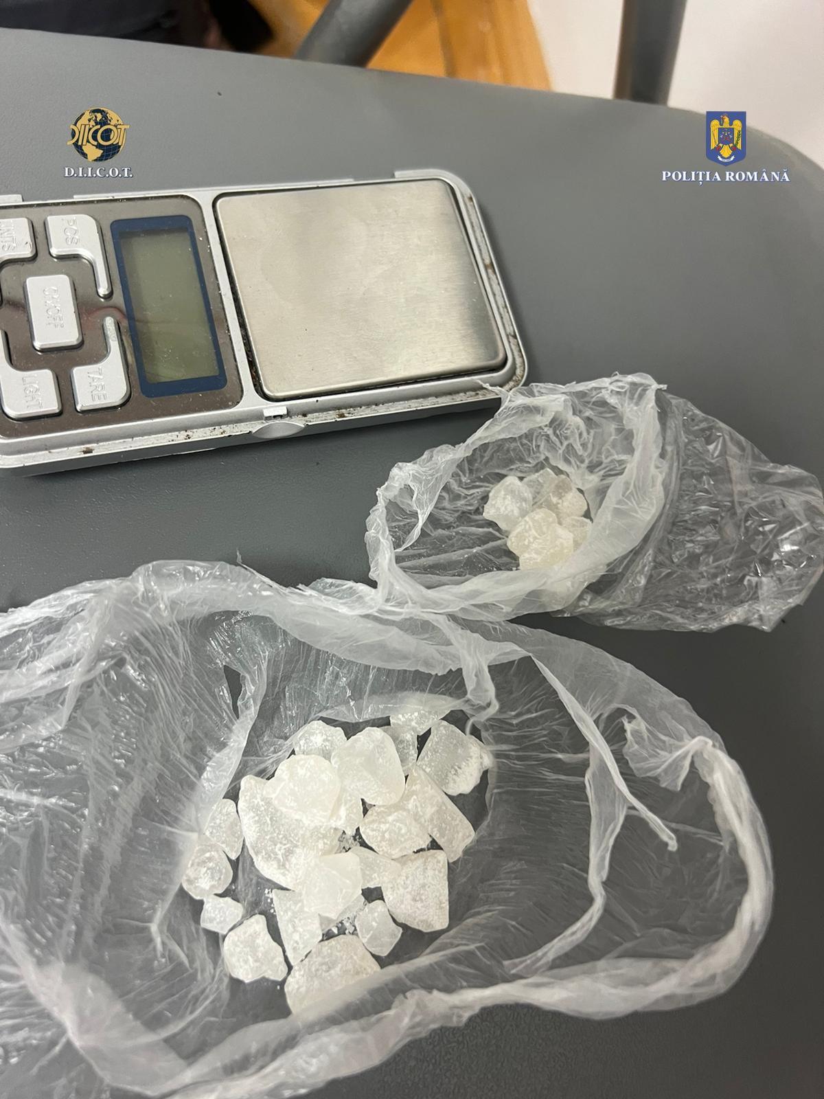 Totodată, asupra sa, au mai fost descoperite droguri de mare risc (3-CMC), 2.000 de lei și un cântar electronic de mare precizie, cu urme de substanță albă cristalină.
