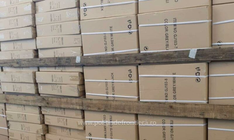 În urma inventarierii a rezultat o cantitate de 9.712 articole de încălțăminte, inscripţionate cu numele unor firme cunoscute, susceptibile a fi contrafăcute.