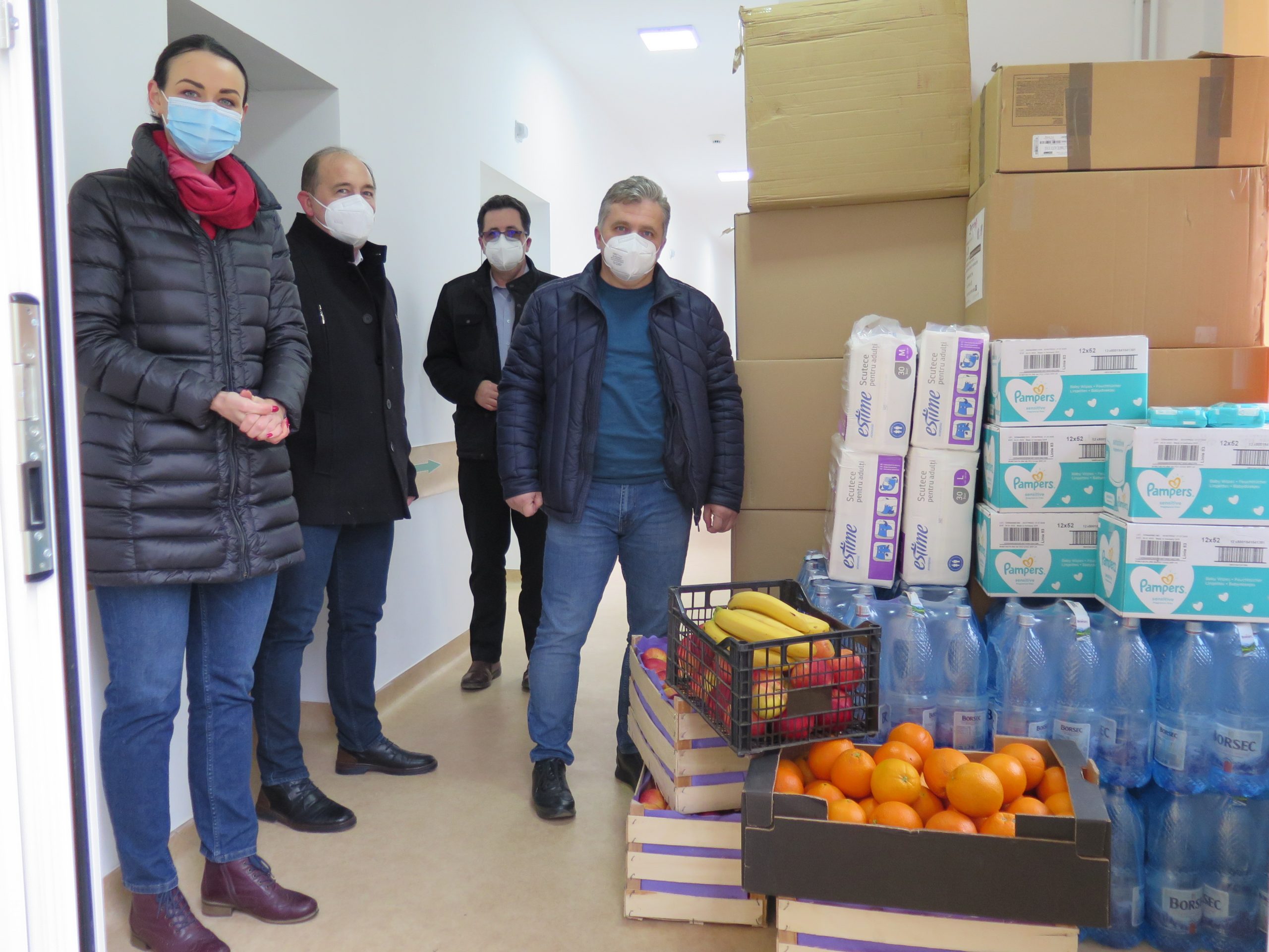 Astfel, astăzi, 12 martie 2021, primarul Gheorghe Roman, alături de viceprimarul Dan Sima și deputatul Christine Thellmann au făcut donații constând în alimente de bază și produse de igienă, care vor ajunge la persoanele internate în secția COVID din cadrul spitalului.