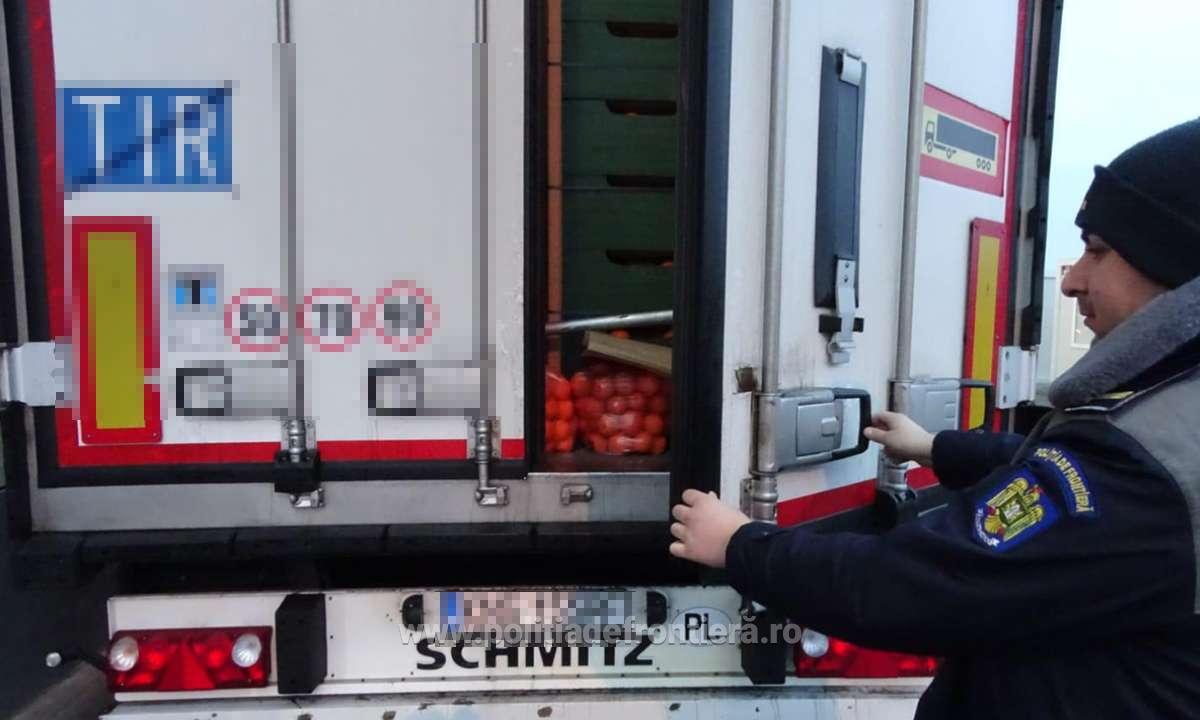 Cinci cetățeni străini, depistaţi ascunşi într-un camion cu portocale