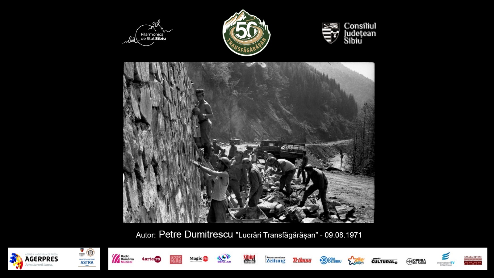 Tot în marja proiectului #Transfăgărășan50, inițiat de Asociația Județeană de Turism Sibiu și de echipa Anii Drumeției, sub auspiciile Consiliului Județean Sibiu, publicul este invitat la expoziția „Construcția Transfăgărășanului”, care aduce în atenție imagini de arhivă din timpul lucrărilor de construcție a Transfăgărășanului, la Sala Thalia a Filarmonicii. Expoziția digitală, realizată în parteneriat cu Agenția Națională de Presă AGERPRES, cuprinde 28 de fotografii și va putea fi vizionată pe tot parcursul lunii septembrie pe ecranele din foaierul Sălii Thalia.