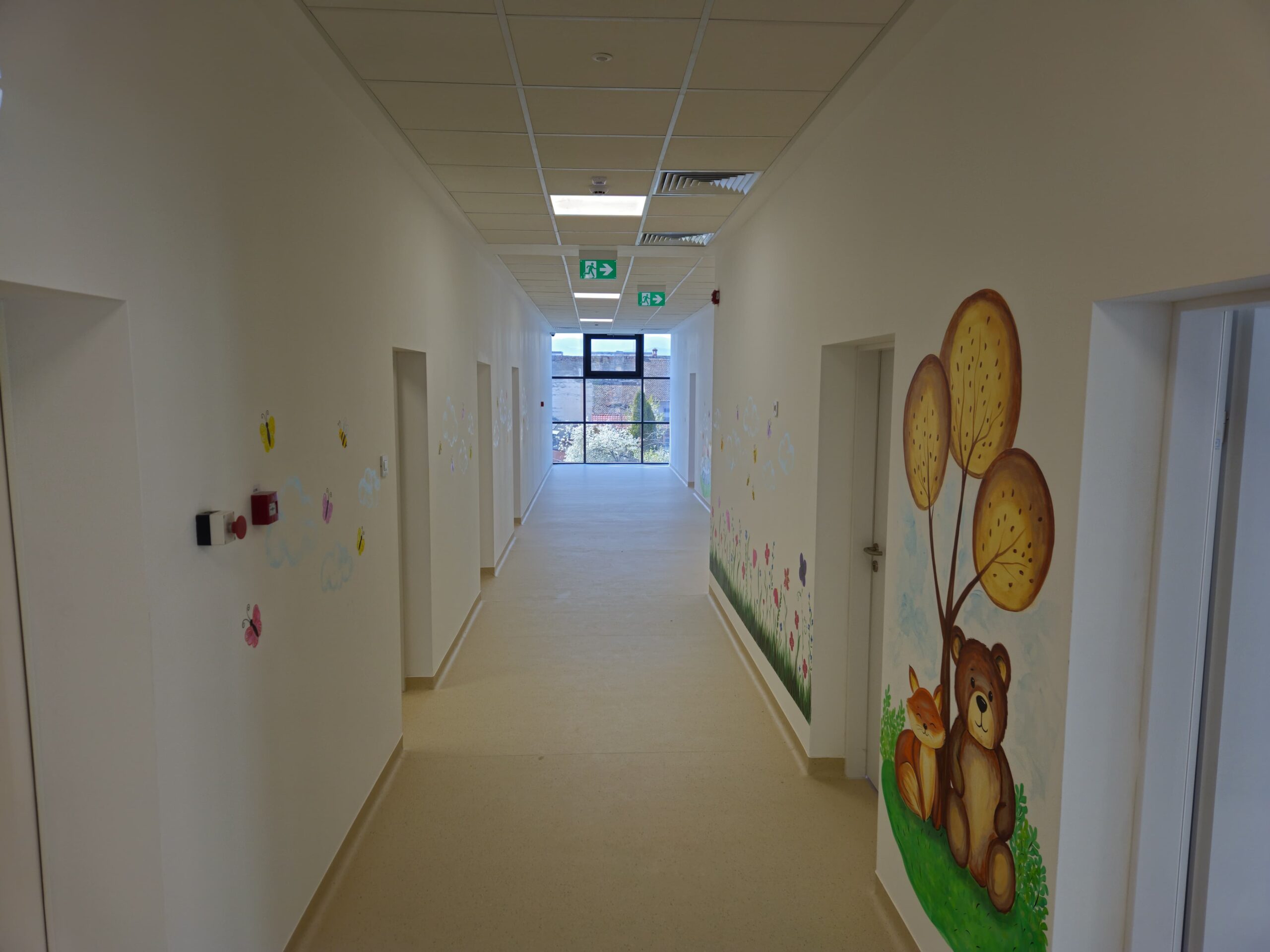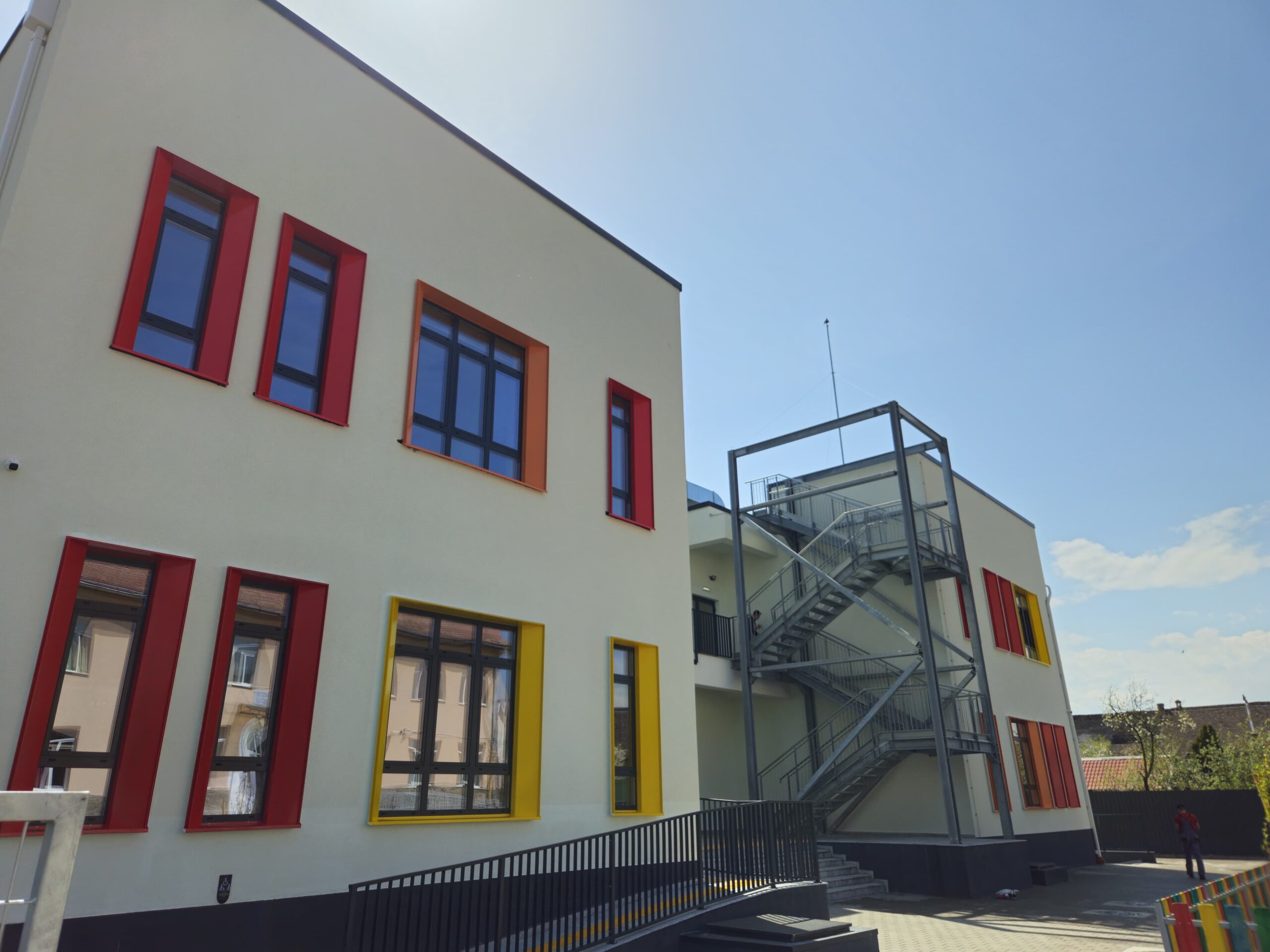 Noua clădire, are o suprafață desfășurată de aproximativ 1.650 mp, având la parter creșa, iar la etaj grădinița: