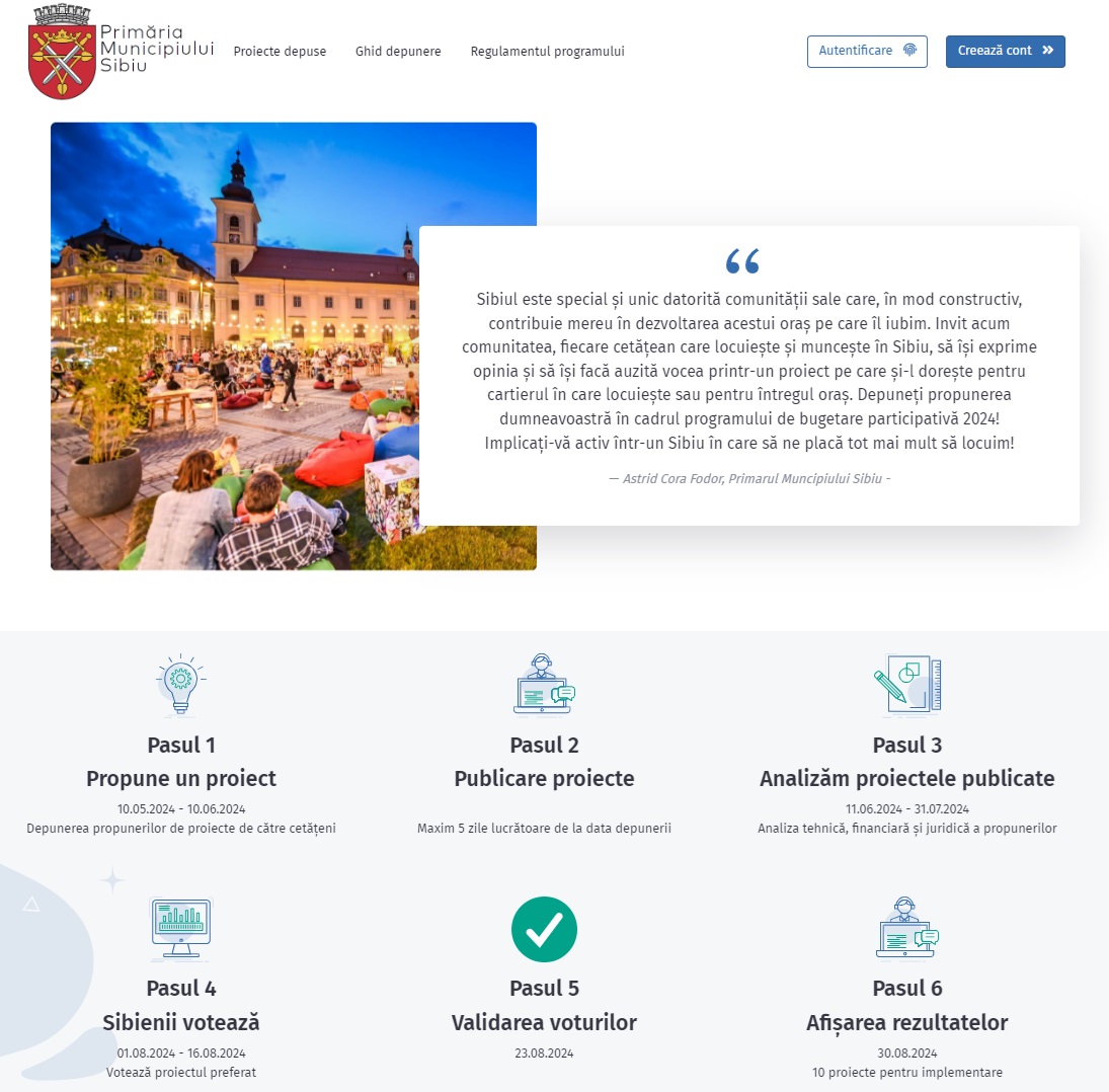 1 – 16 august 2024 – Sibienii vor fi invitați să voteze pentru unul dintre proiectele eligibile, care vor fi publicate pe site.