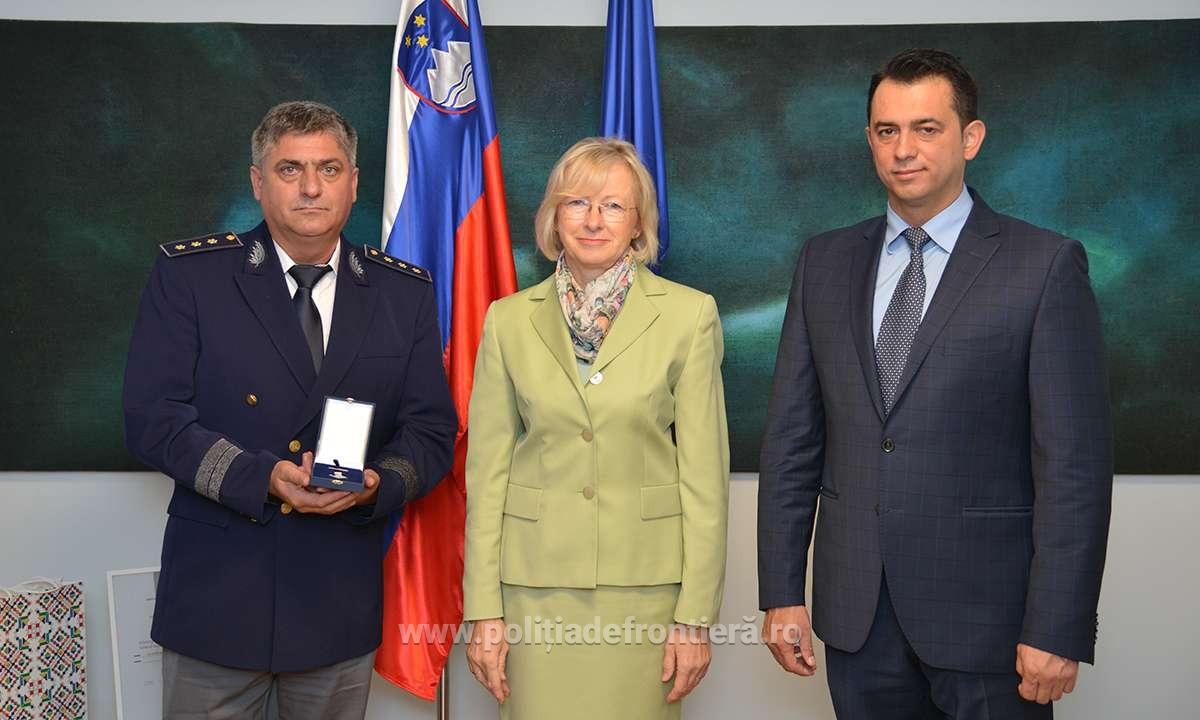 În data de 06.10.2022, la Ambasada Sloveniei din București, ambasadorul Republicii Slovenia, Excelența Sa, doamna Lea Stančič, a acordat distincția „Ordinul de argint”pentru lucrări şi servicii excepționale prestate în securitatea, apărarea şi protecţia Republicii Slovenia şi pentru cooperarea internaţională. Distincția a fost primită de către șeful Poliției de Frontieră Române, domnul comisar șef de poliție Victor Ștefan Ivașcu, în numele polițiștilor de frontieră români care au participat, în anul 2021, la o operaţiune comună de combatere a migraţiei ilegale, împreună cu poliţiştii sloveni, la graniţa dintre Slovenia şi Croaţia. La activitate a luat parte și șeful contingentului, comisar șef de poliție Enachi Leontin, din cadrul Inspectoratului Teritorial al Poliției de Frontiera Iași.