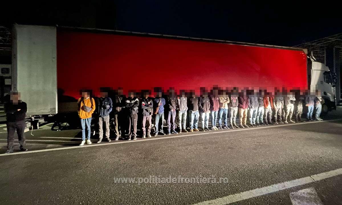 În urma efectuării controlului amănunţit al mijlocului de transport, au fost descoperiţi, ascunşi în compartimentul pentru marfă, douăzeci și doi de cetăţeni străini.