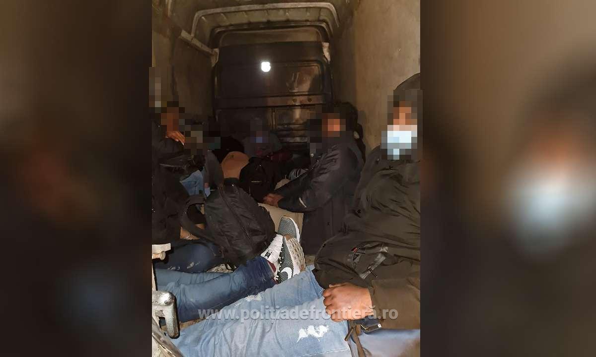 În urma efectuării controlului amănunţit al mijlocului de transport, au fost descoperiţi, ascunşi în compartimentul pentru marfă, patru cetăţeni străini.