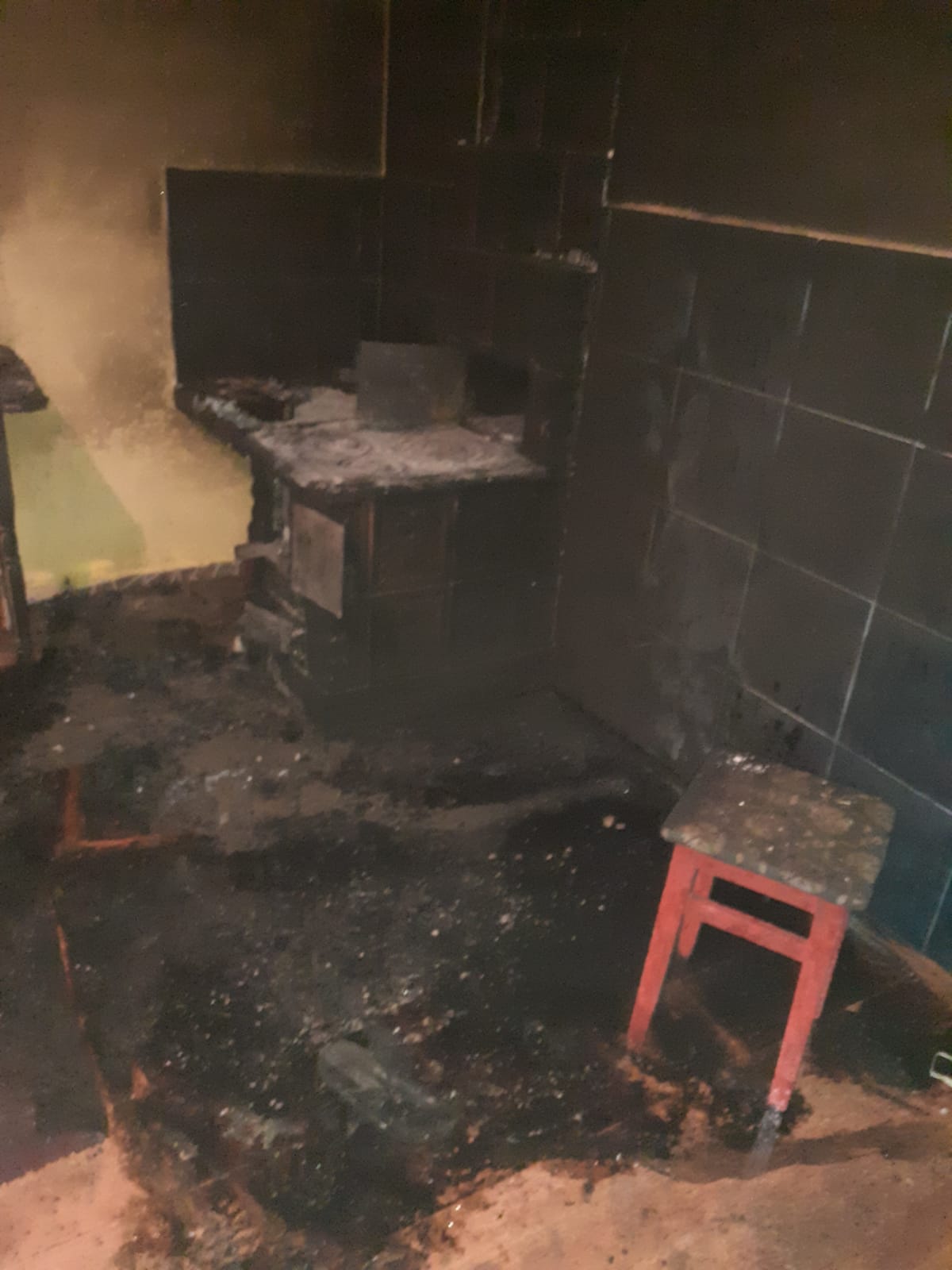 La sosirea echipajelor la locul intervenției, incendiul era lichidat de către membrii familiei și vecini. Flăcările se manifestaseră în interiorul locuinței, în imediata apropiere a sobei existentă într-una din camere, fiind afectați, prin afumare, pereții locuinței.