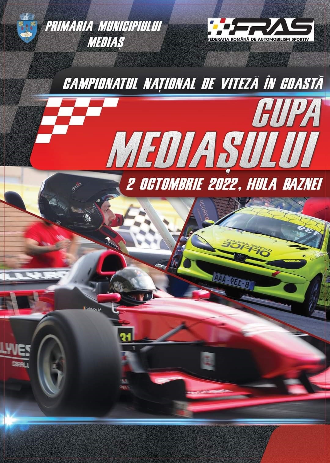Primăria Municipiului Mediaș și Federația Română de Automobilism Sportiv organizează la Mediaș etapa cu numărul 7 din cadrul Campionatului Național de Viteză în Coastă. Evenimentul va avea loc duminică, 2 octombrie 2022, pe Hula Baznei (DN 14A, ieșirea spre Târnăveni).