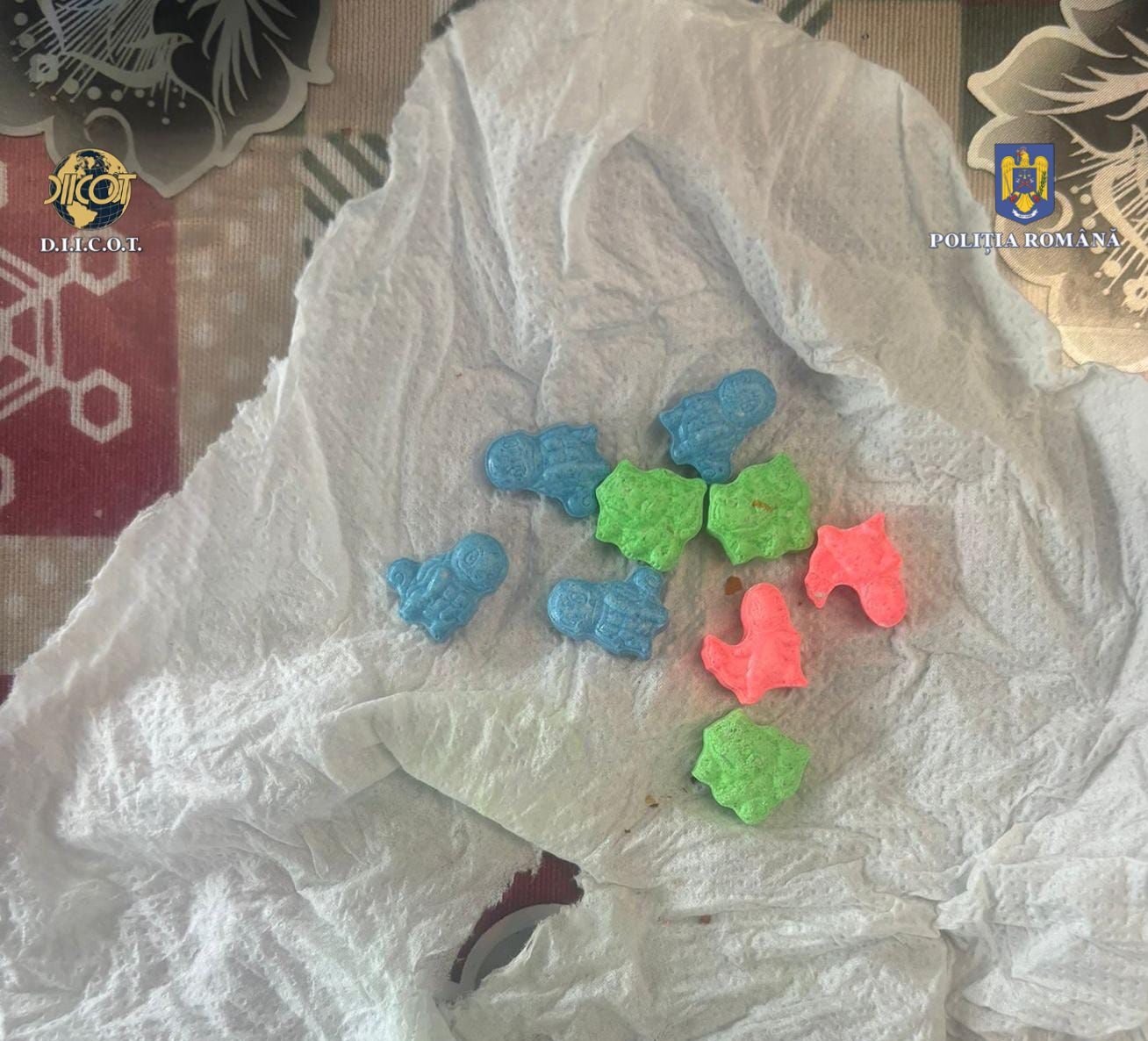 Au fost puse în aplicare trei mandate de percheziție domiciliară, fiind descoperite și ridicate 26 de doze de droguri de mare risc (ADB – BUTINACA), mai multe comprimate și fragmente de comprimate ecstasy, o sumă de bani în lei, obiecte folosite la prepararea și porționarea drogurilor, precum și alte mijloace de probă.