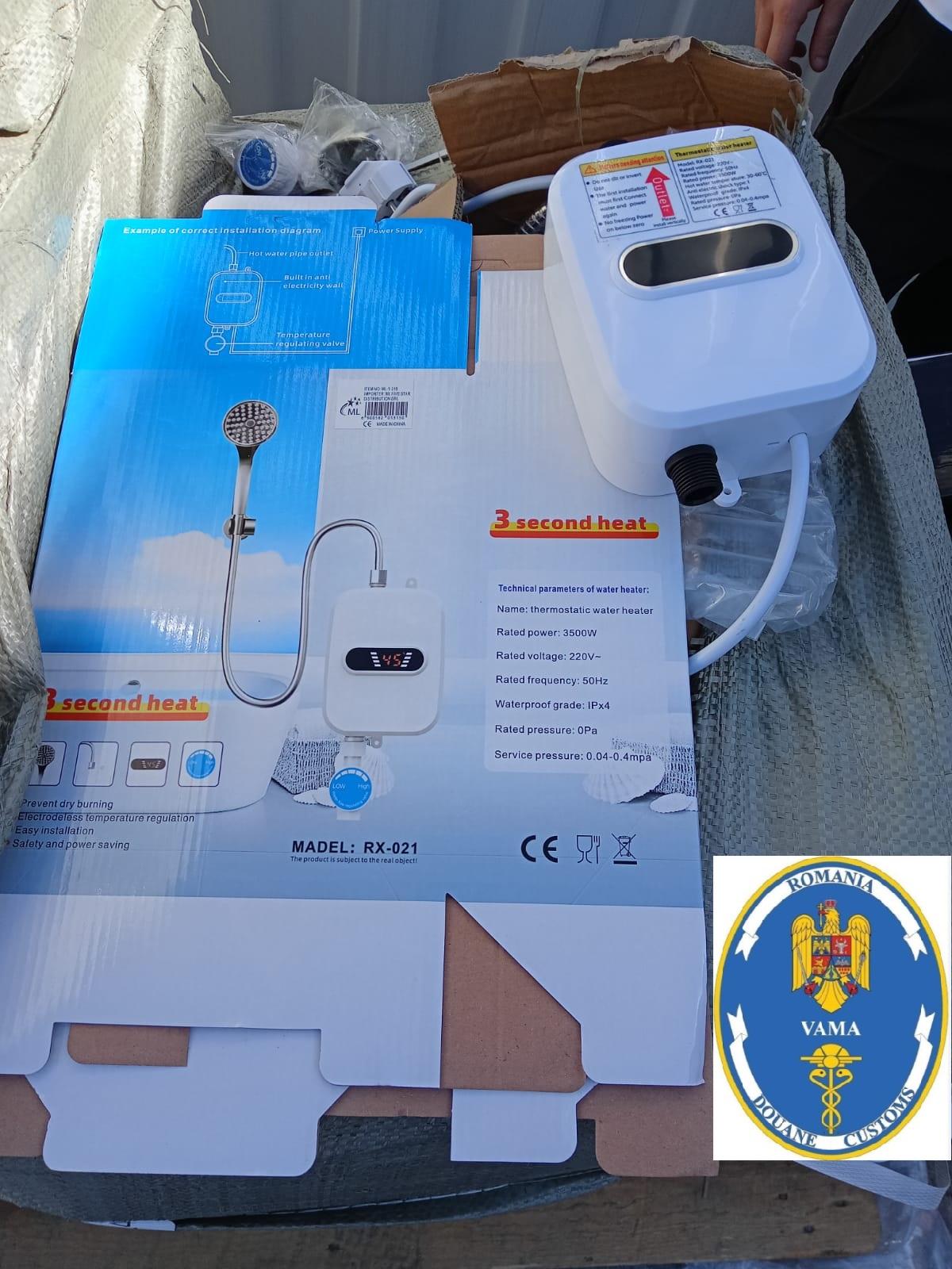 În data de 12 septembrie 2023, inspectorii vamali din cadrul Biroului Vamal de Frontieră Constanța Sud – Direcția Regională Vamală București, au descoperit într-un container sosit din China, aparținând unei societăți comerciale din București, 216 bucăți boilere electrice , bunuri susceptibile a aduce atingere mărcii,, DELIMANO’’.