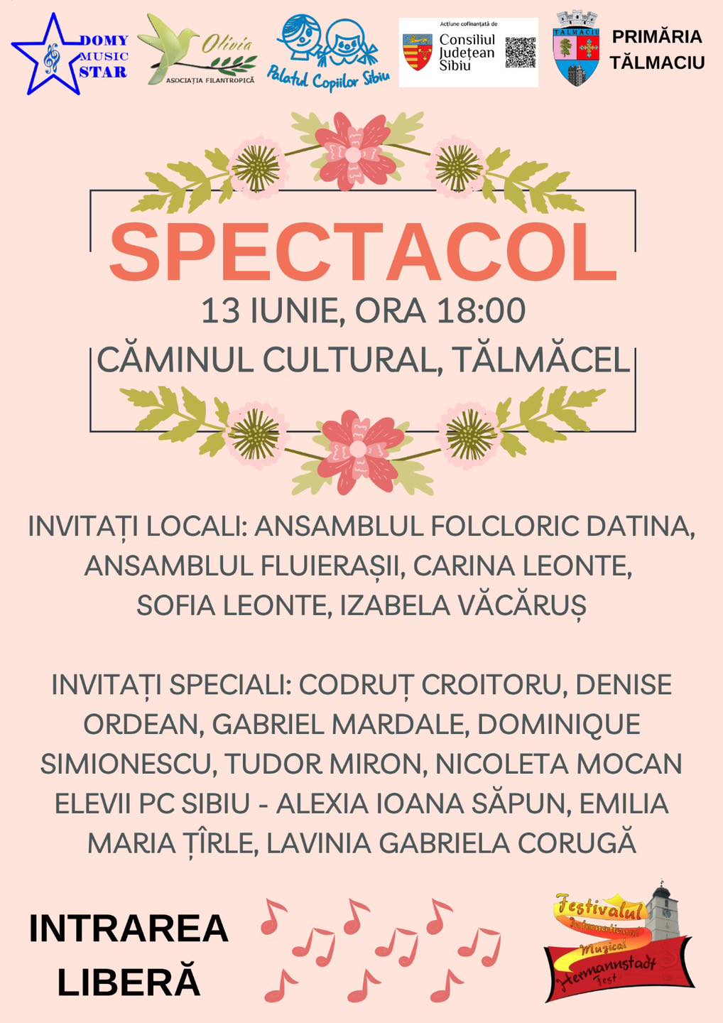 Avem plăcerea să vă invităm la deschiderea festivalului HermannstadtFest 2024, ediția a XII. Suntem onorați că această ediție se organizează pentru prima dată în Tălmăcel, aducând în prim-plan artiști locali care promovează cultura noastră și duc numele orașului mai departe într-o sărbătoare a muzicii și talentului.