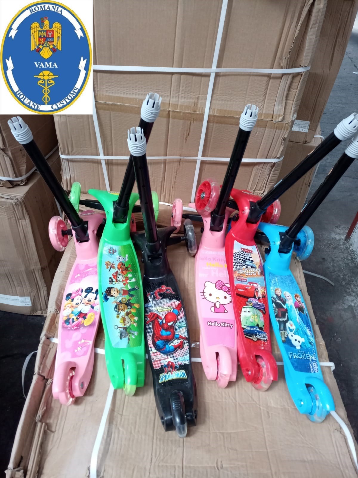 Ca urmare a controlului, inspectorii vamali au reținut 128 bucăți trotinete, 64 bucăți skateboard și 80 bucăți mașinuțe, succeptibile de a aduce atingere dreptului de proprietate intelectuală pentru marcile ,,DISNEY’’, ,,PAW PATROL’’, ,,HELLO KITTY’’, ,,CARS’’, ,,SPIDERMAN’’, ,,NERF’’ și ,,MERCEDES’’.