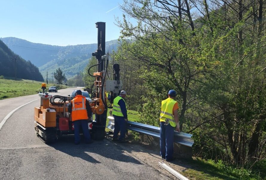 * desfacere parapet metalic, montat parapet metalic, montat catadioptrii, vopsit mână curenta poduri pe DJ 106A Rășinari – Curmătură