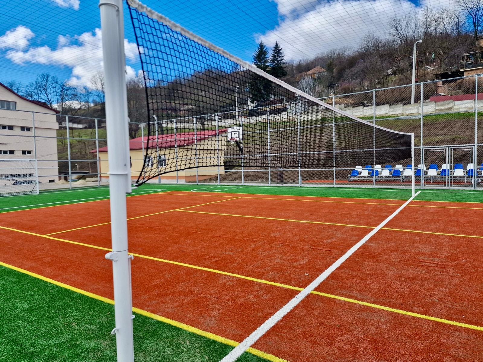 Amplasat pe strada Piscului nr. 8, terenul de sport va fi utilizat atât de elevii școlii, cât și de copiii din comunitate. Investiția a fost realizată de Consiliul Județean Sibiu cu sprijinul ROMGAZ și a presupus amenajarea unui teren multifuncțional cu dimensiunile de 40 x 20 m, echipat cu porți de minifotbal, coșuri de baschet și fileu de tenis. Terenul a fost împrejmuit, montat sistem de iluminat nocturn, realizate canalizare pluvială, trotuarele de acces și două piste dedicate alergătorilor.