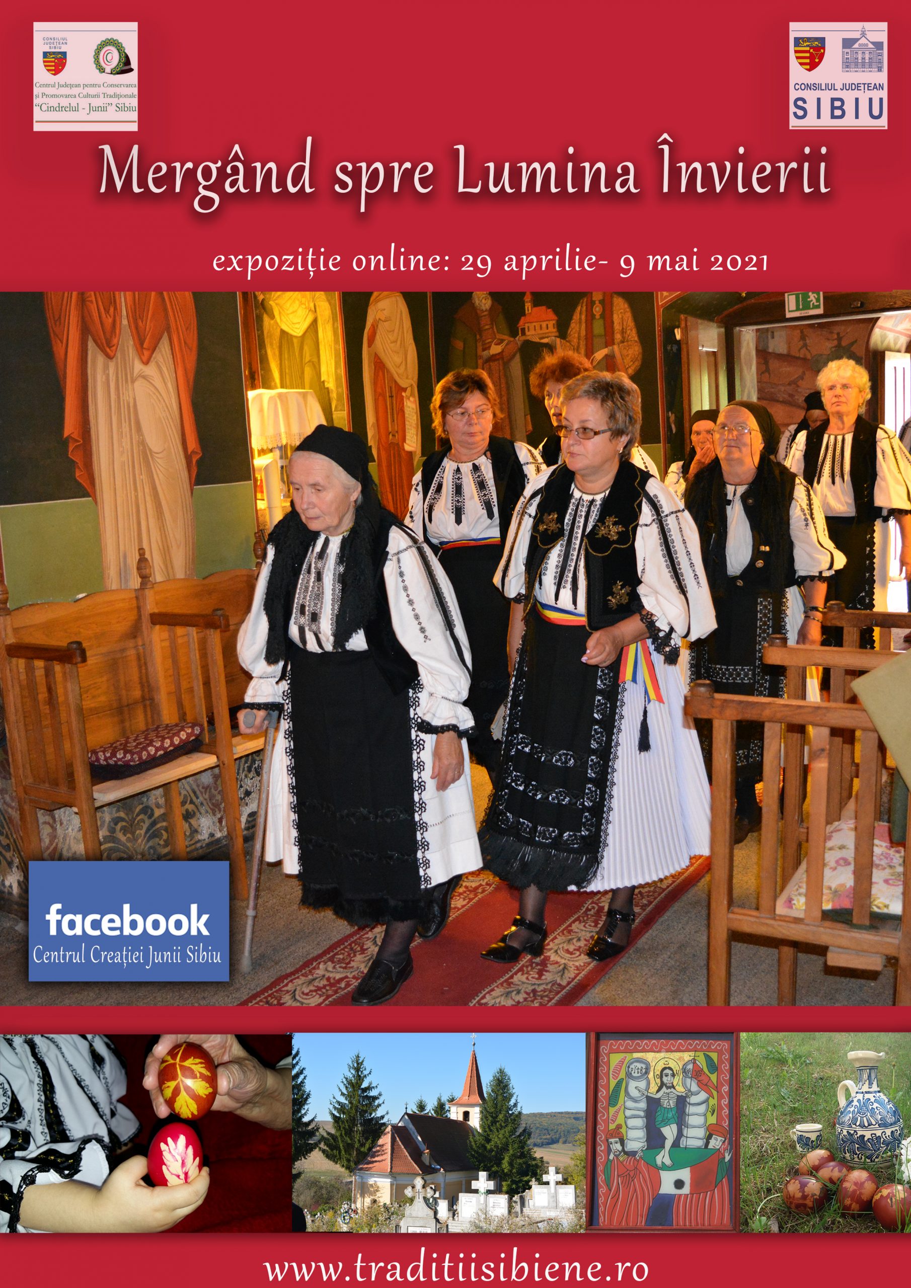 Centrul Judeţean pentru Conservarea şi Promovarea Culturii Tradiţionale „Cindrelul-Junii” Sibiu, instituție subordonată Consiliului Judeţean Sibiu, deschide astăzi expoziția online „Mergând spre Lumina Învierii”, din dorința de a aduce în prim-plan obiceiuri ale Sfintelor Sărbători Pascale din zonele etnografice ale județului Sibiu.