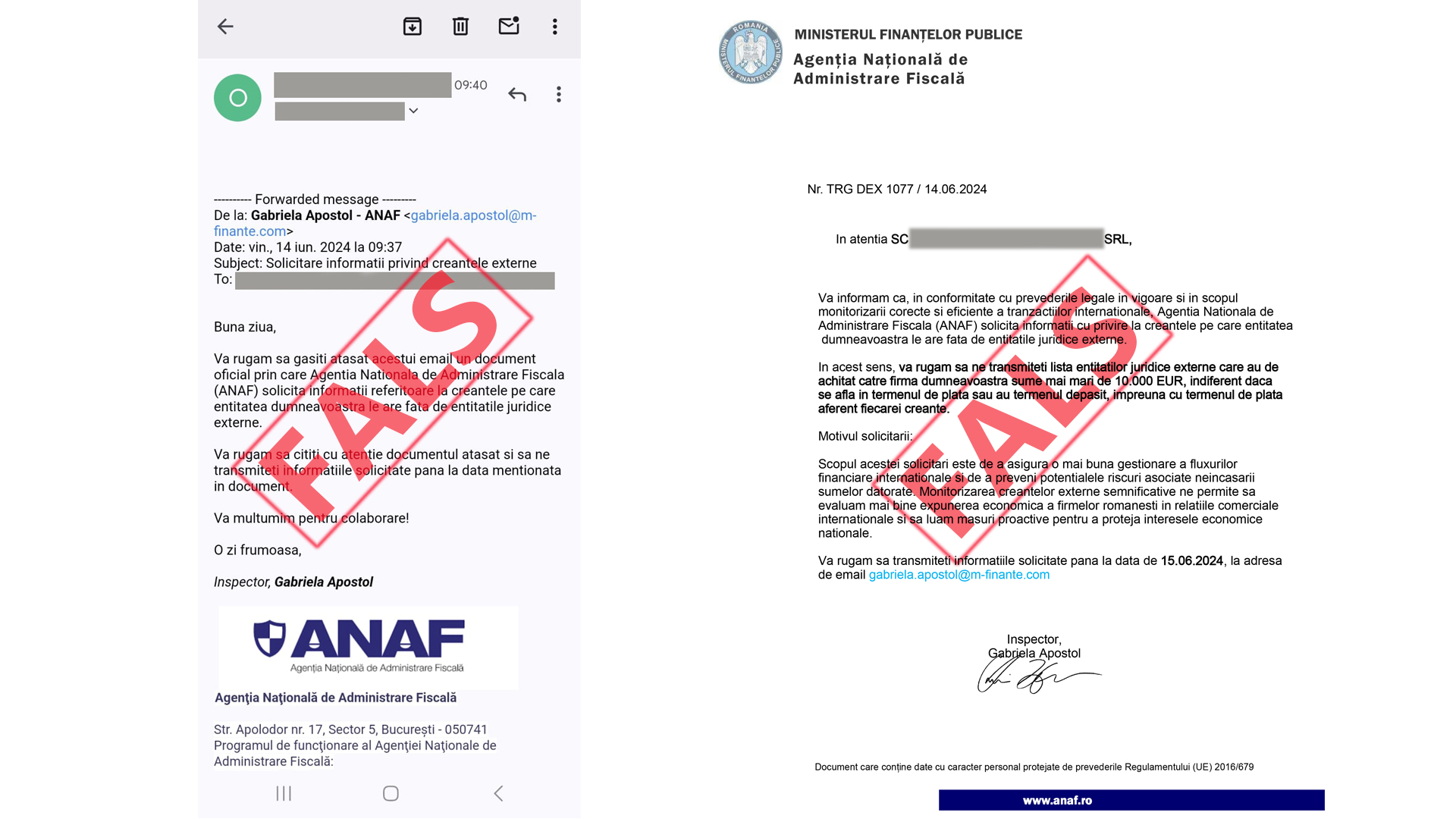 Atragem atenția că această adresă de e-mail NU aparține ANAF și nu trebuie să dați curs solicitărilor!