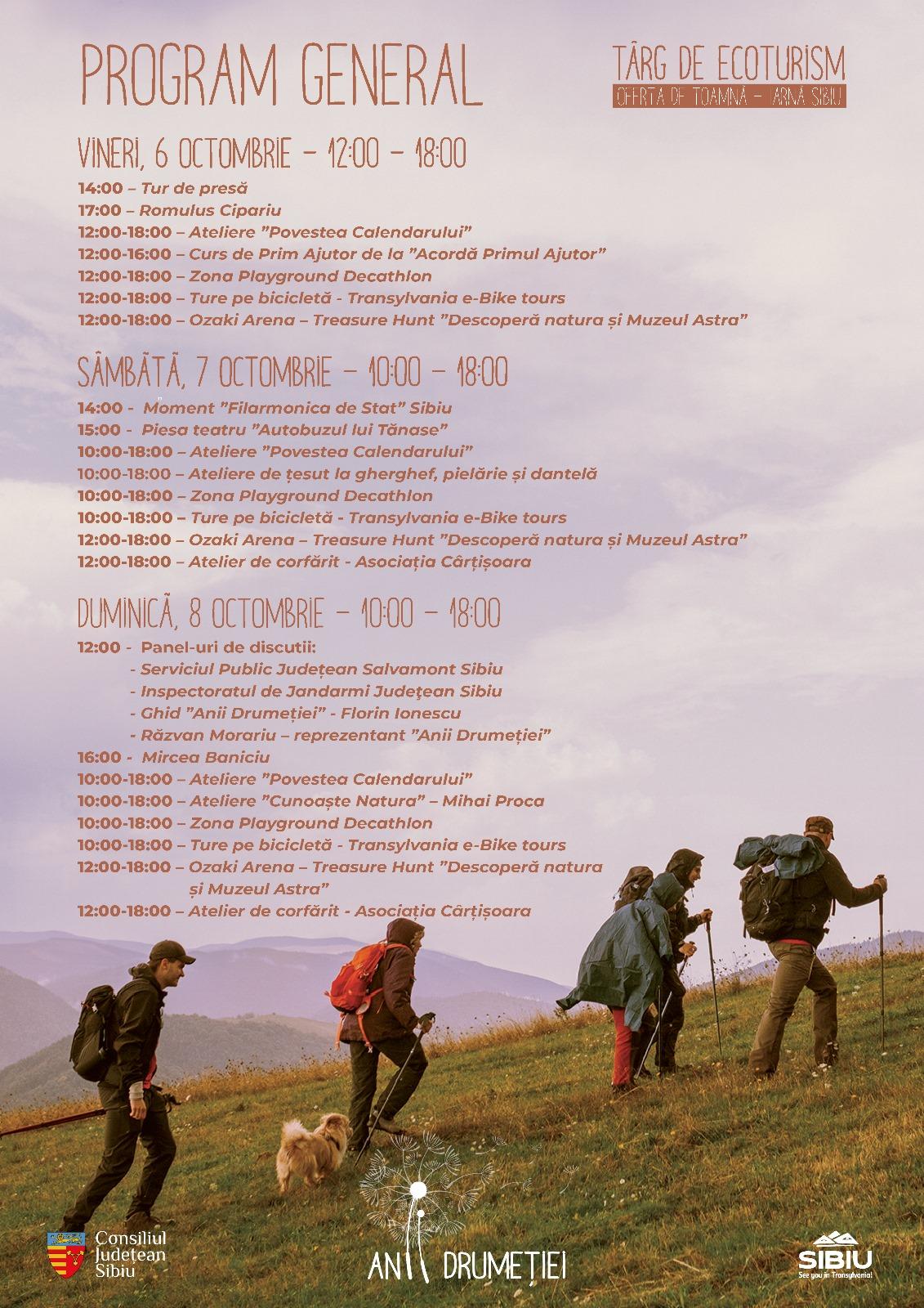 Detalii privind oferta și programul Târgului de Ecoturism pot fi obținute accesând pagina de Facebook/AniiDrumeției sau www.aniidrumetiei.ro